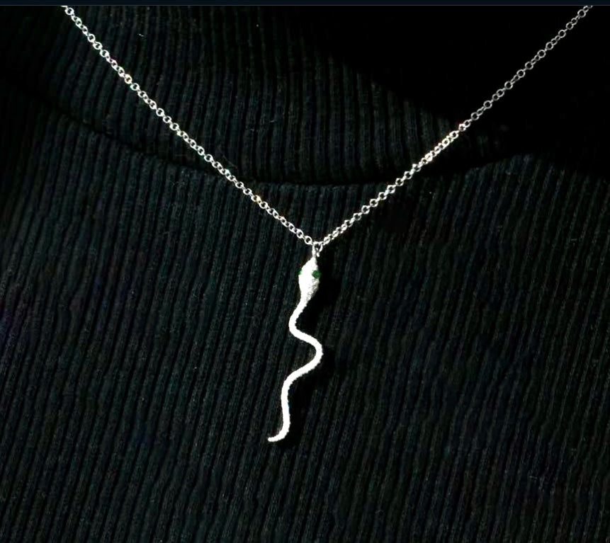 Viper - 14KT White Gold Diamond and Tsavorite Snake Necklace