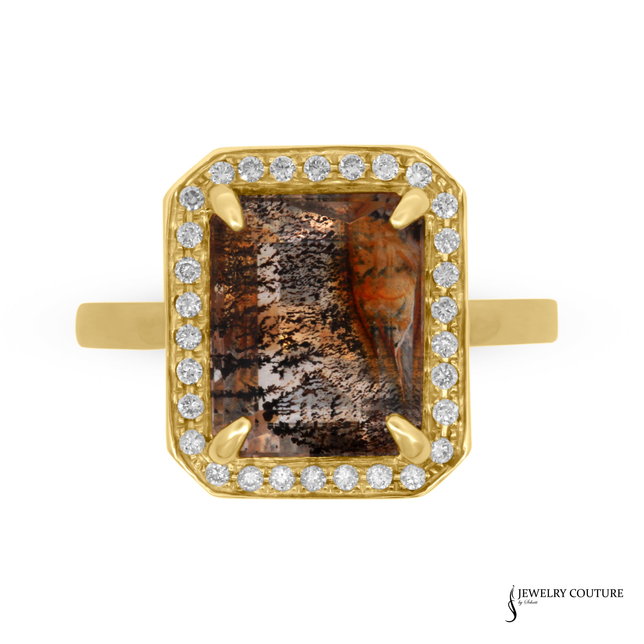 Amaranthus - 14KT Yellow Gold Rutilated Quartz Halo Ring