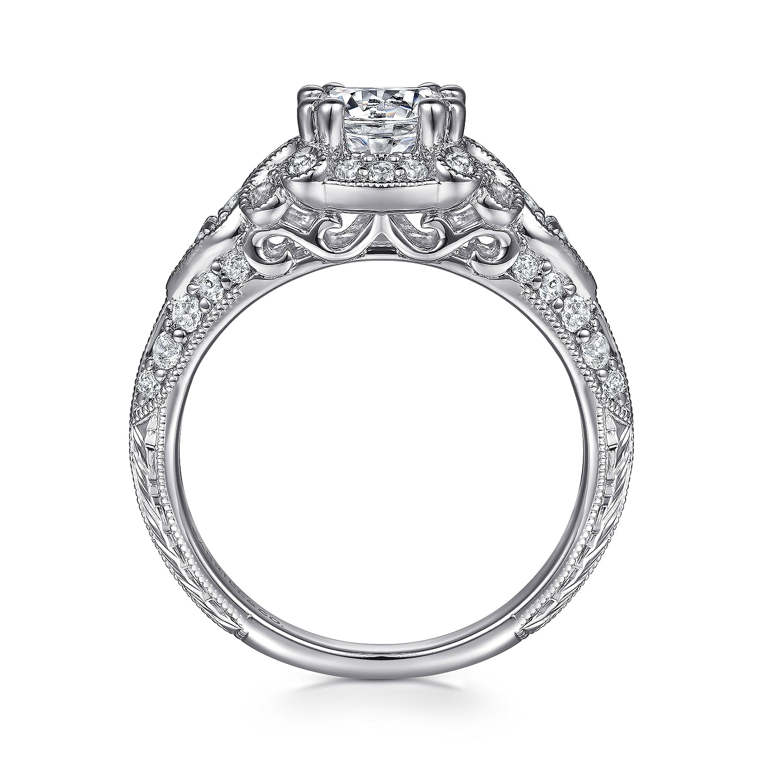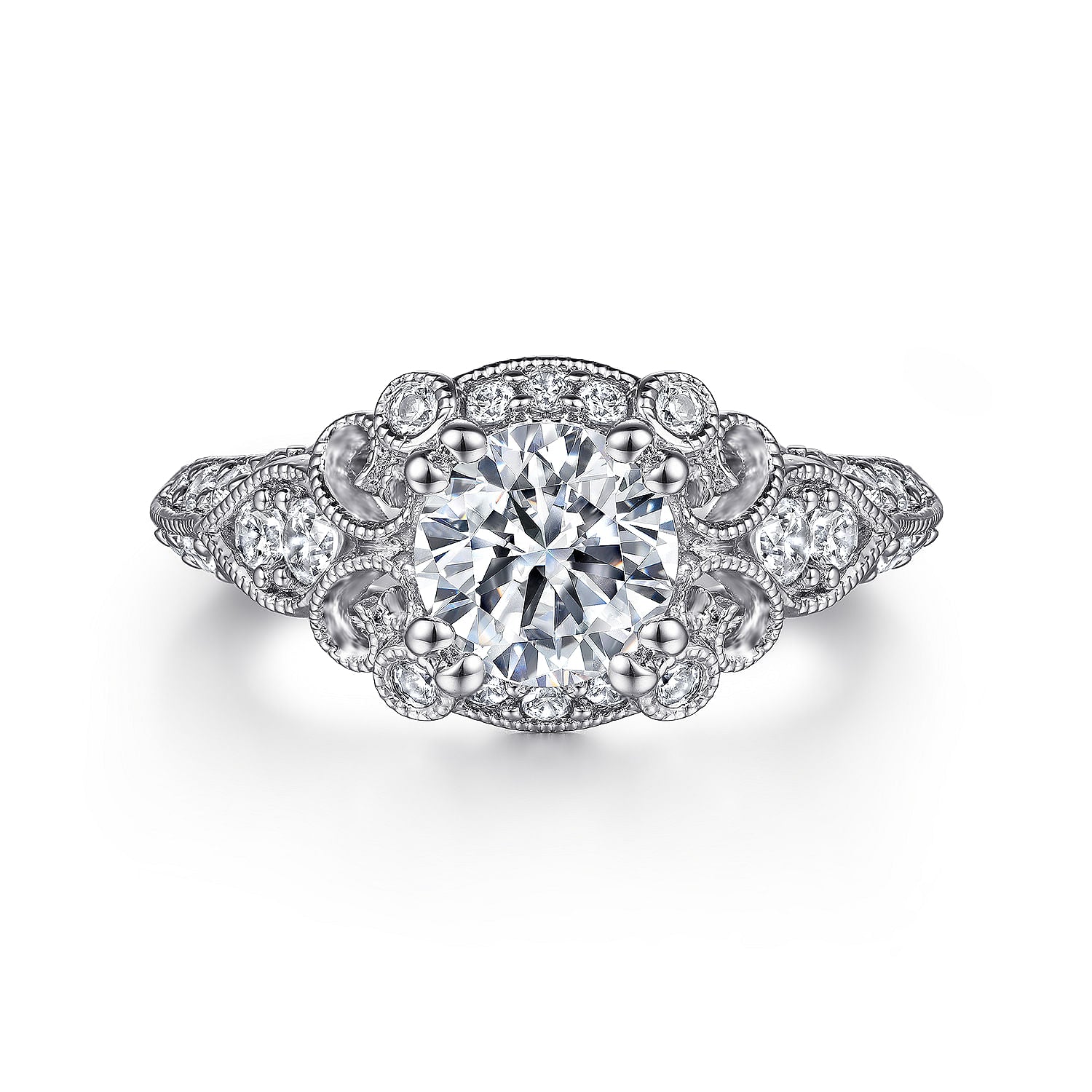 Abel - Vintage Inspired 14K White Gold Fancy Halo Round Diamond Engagement Ring