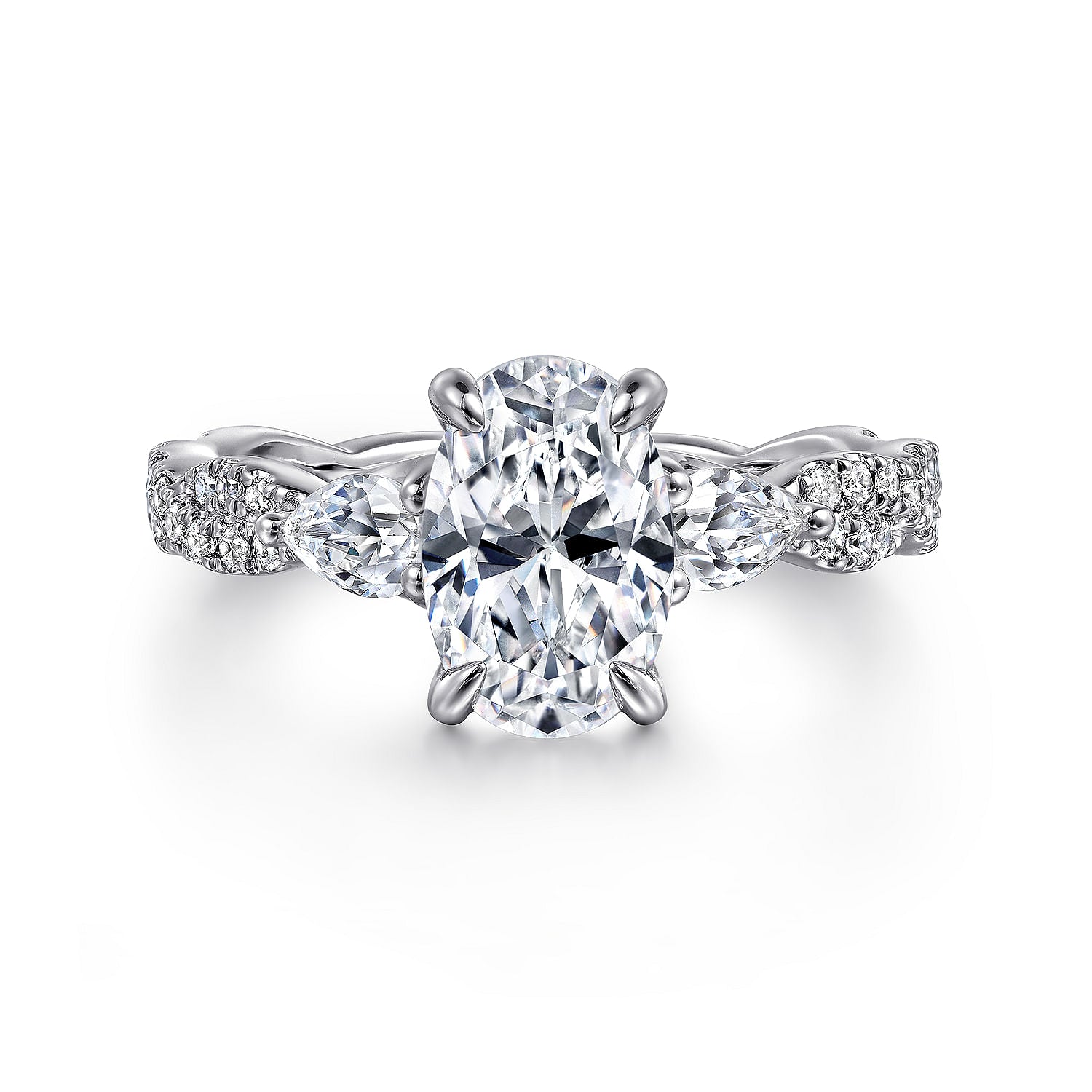 Alanna - 14K White Gold Twisted Oval Three Stone Diamond Engagement Ring