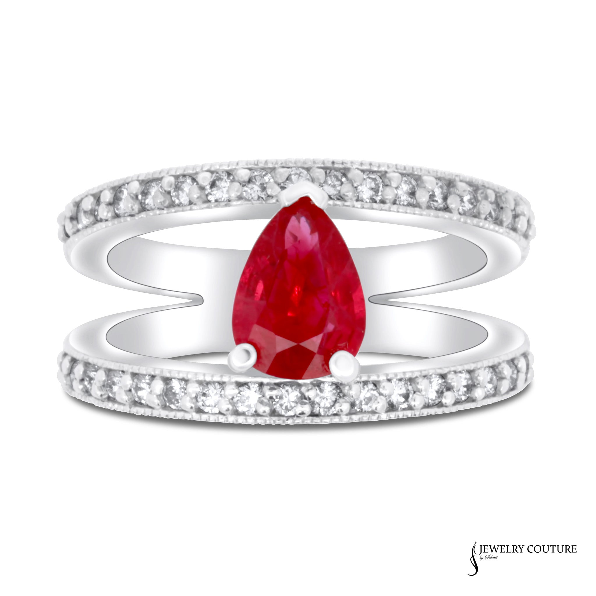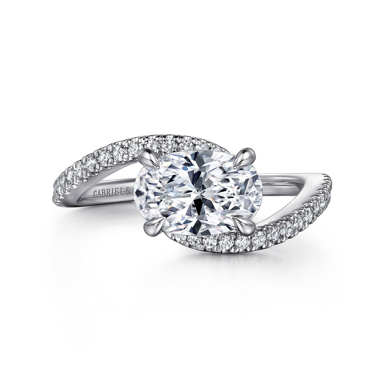 Aiva - 14K White Gold Bypass Oval Diamond Engagement Ring