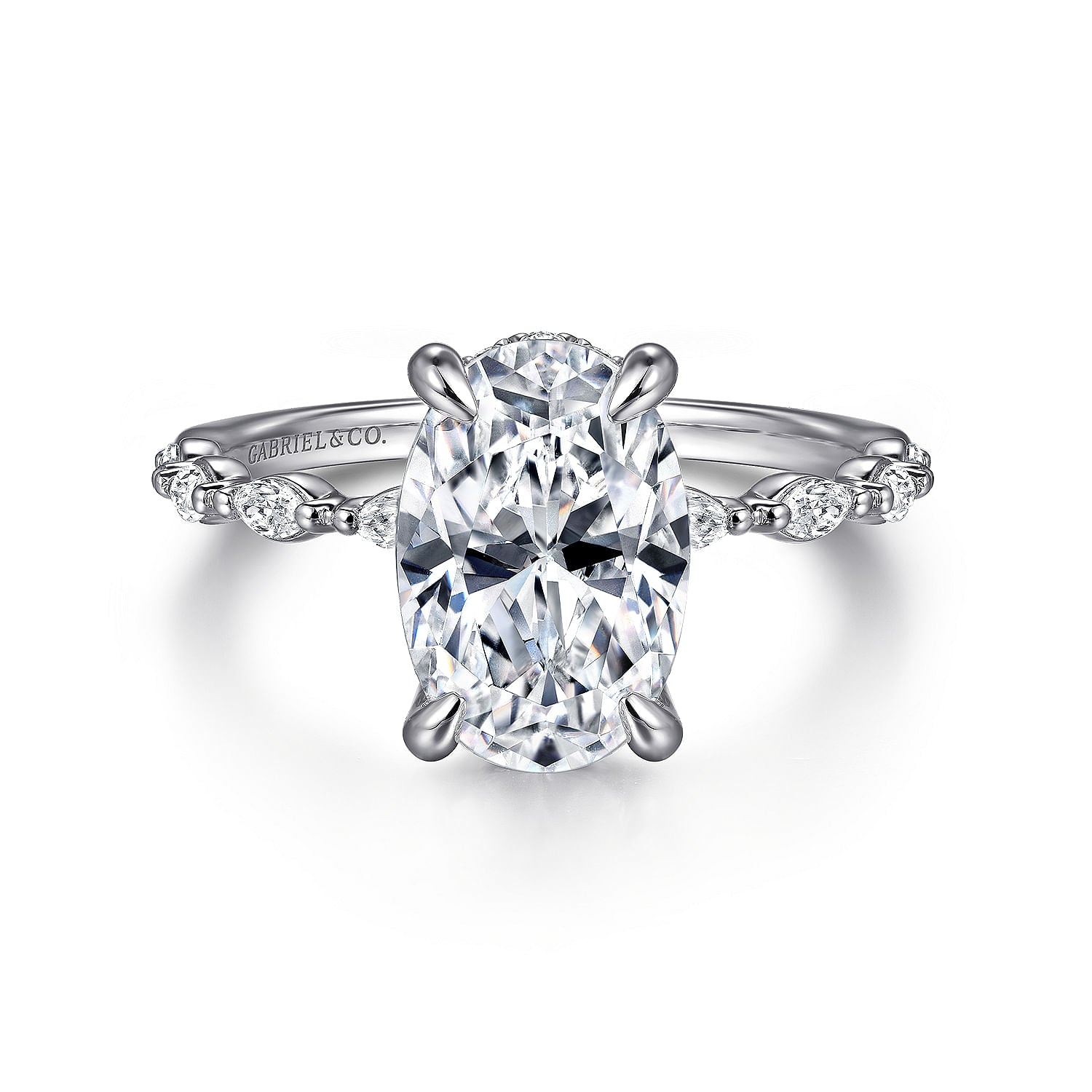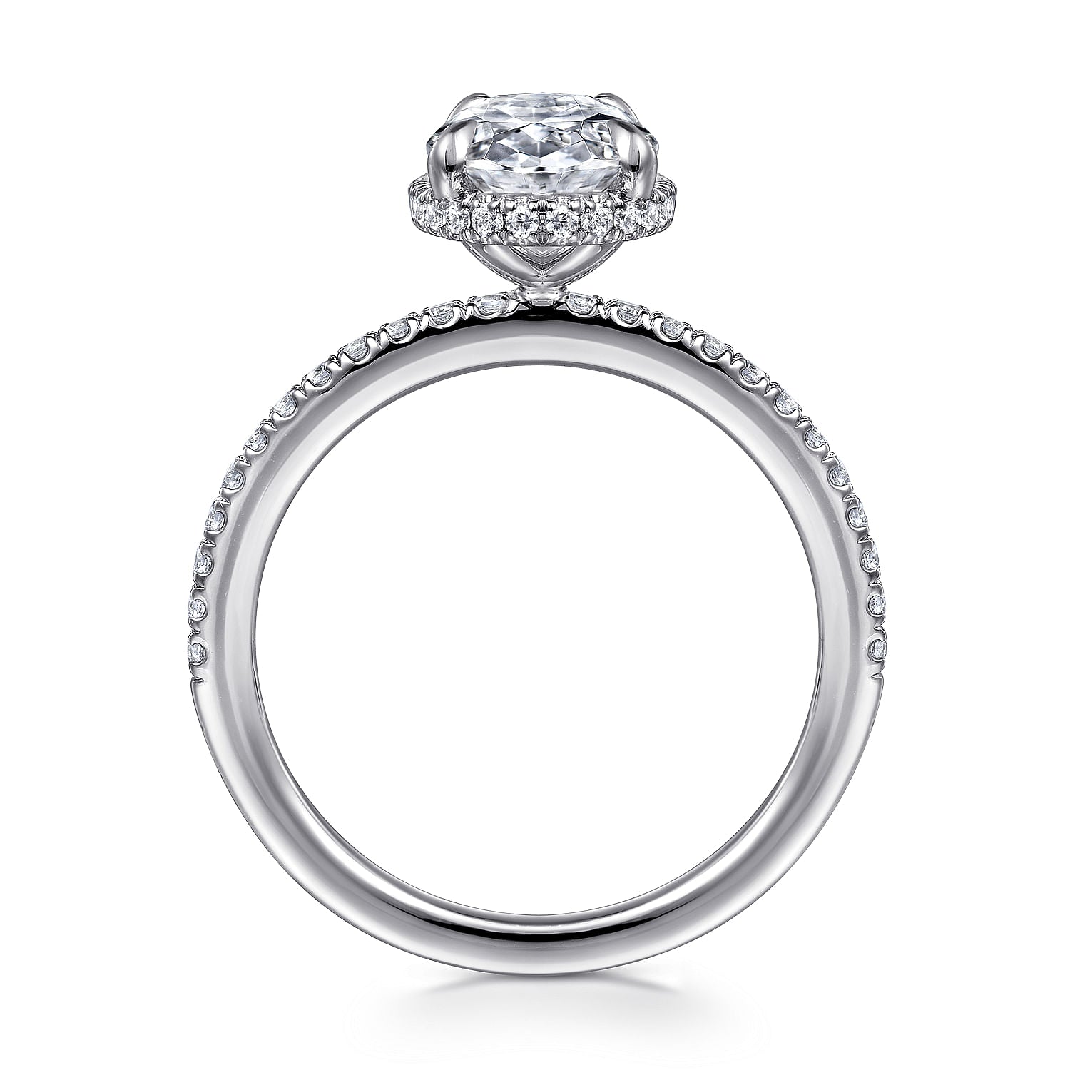 Allesia - 14K White Gold Oval Cut Hidden Halo Diamond Engagement Ring