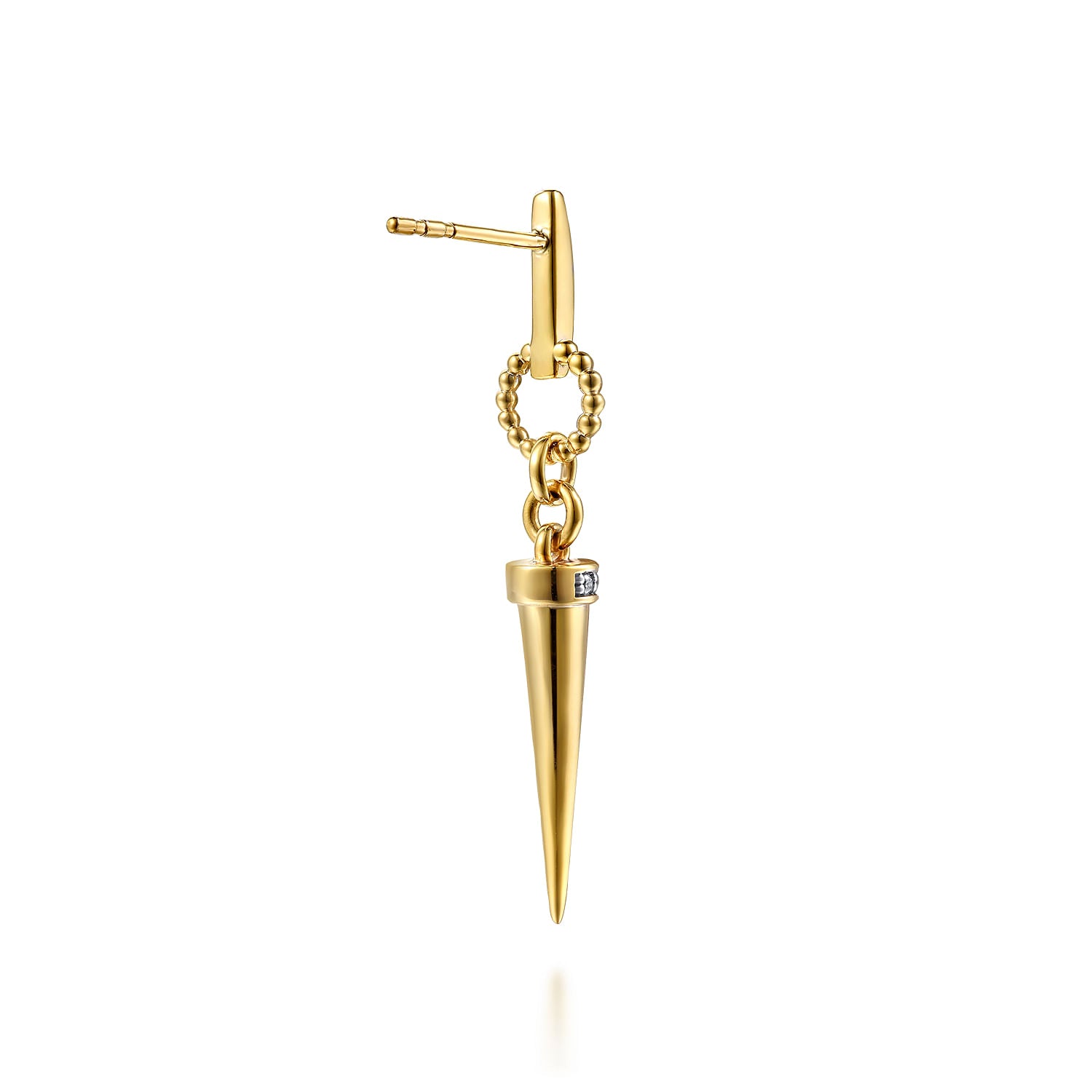 Bujukan Punk - 14K Yellow Gold Bujukan Link and Diamond Bullet Stud Drop Earrings