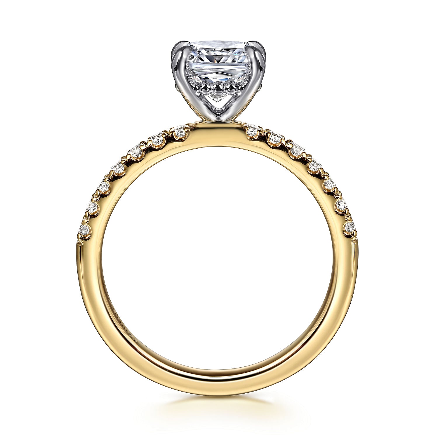 Carmellia - 14K White-Yellow Gold Cushion Cut Diamond Engagement Ring
