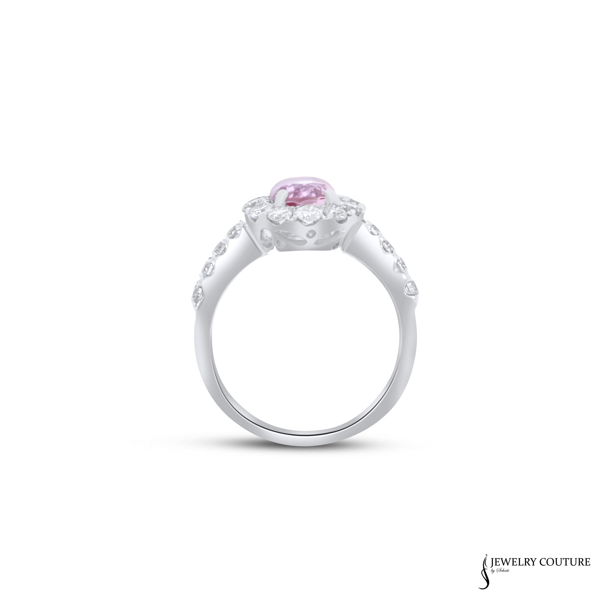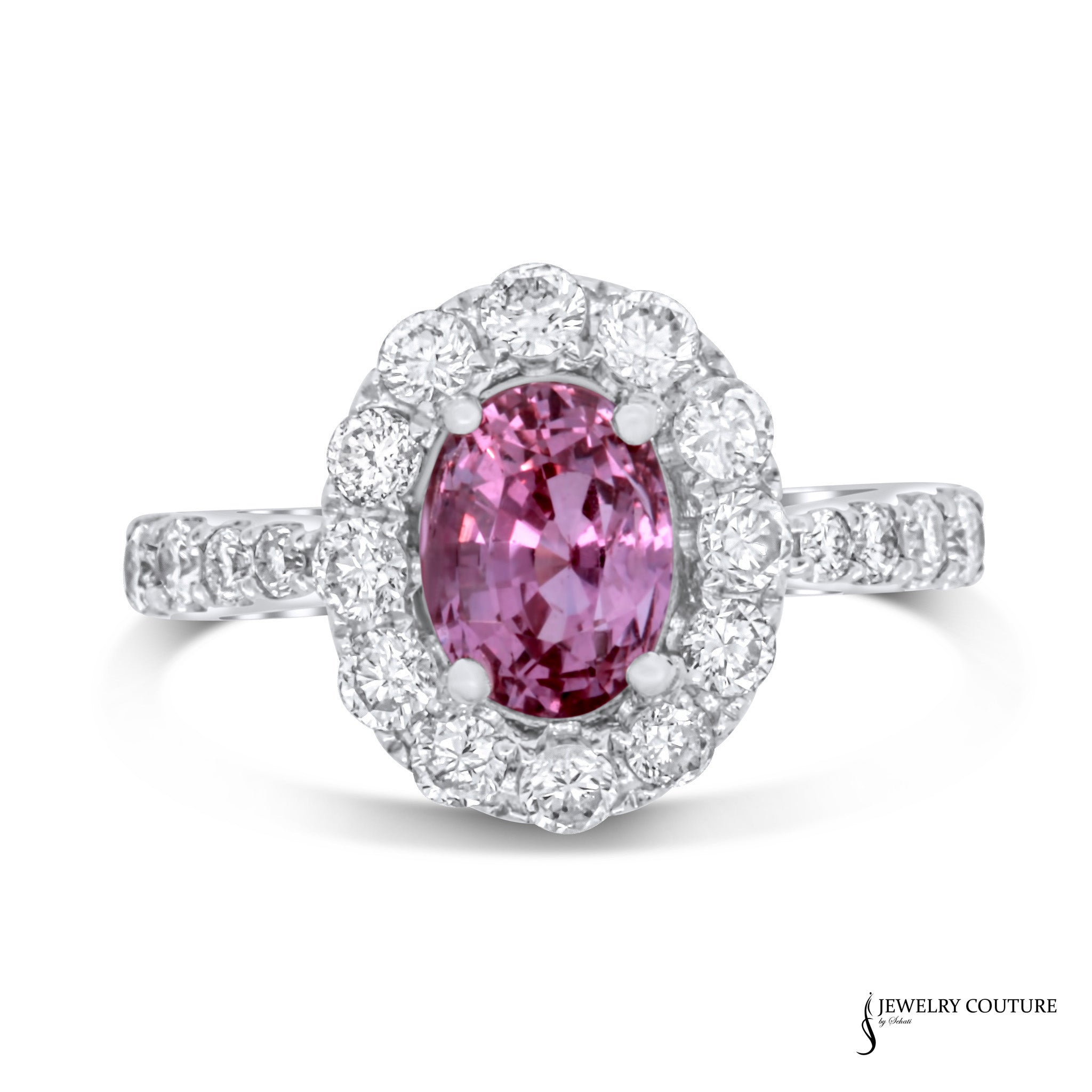Carnation - 14KT White Gold Halo Ring with Oval Pink Sapphire