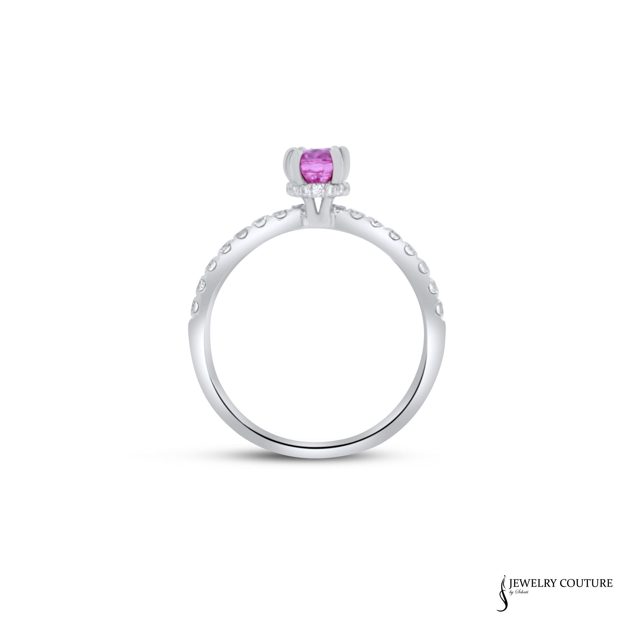 Chrysanthemum - 14KT White Gold and Pink Oval Sapphire