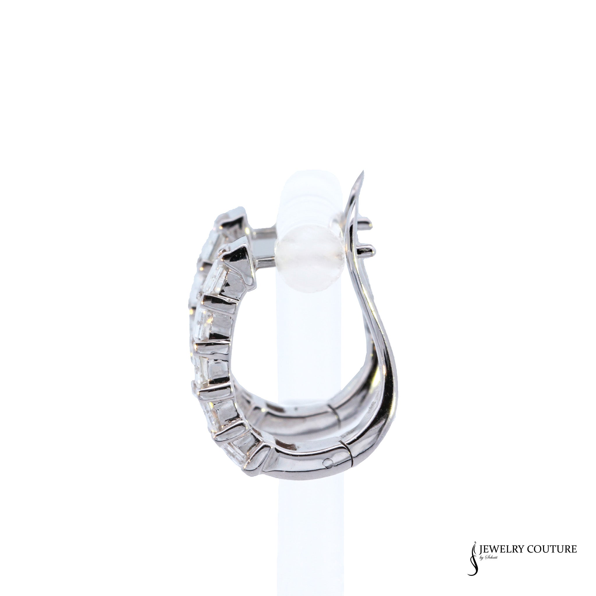 14K White Gold Hoop Earrings with 3.16 CTW Emerald Cut Diamonds – Classic & Elegant Tatsoi