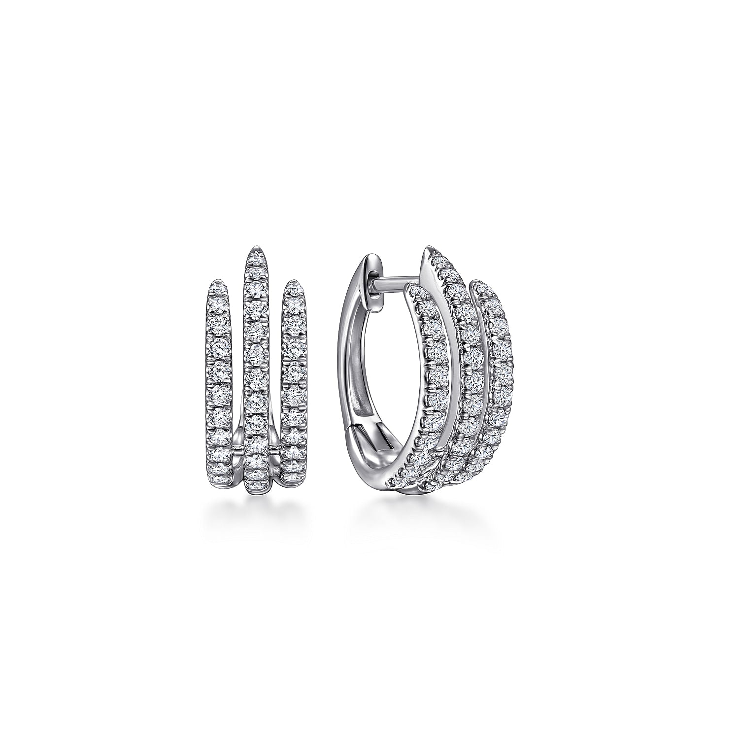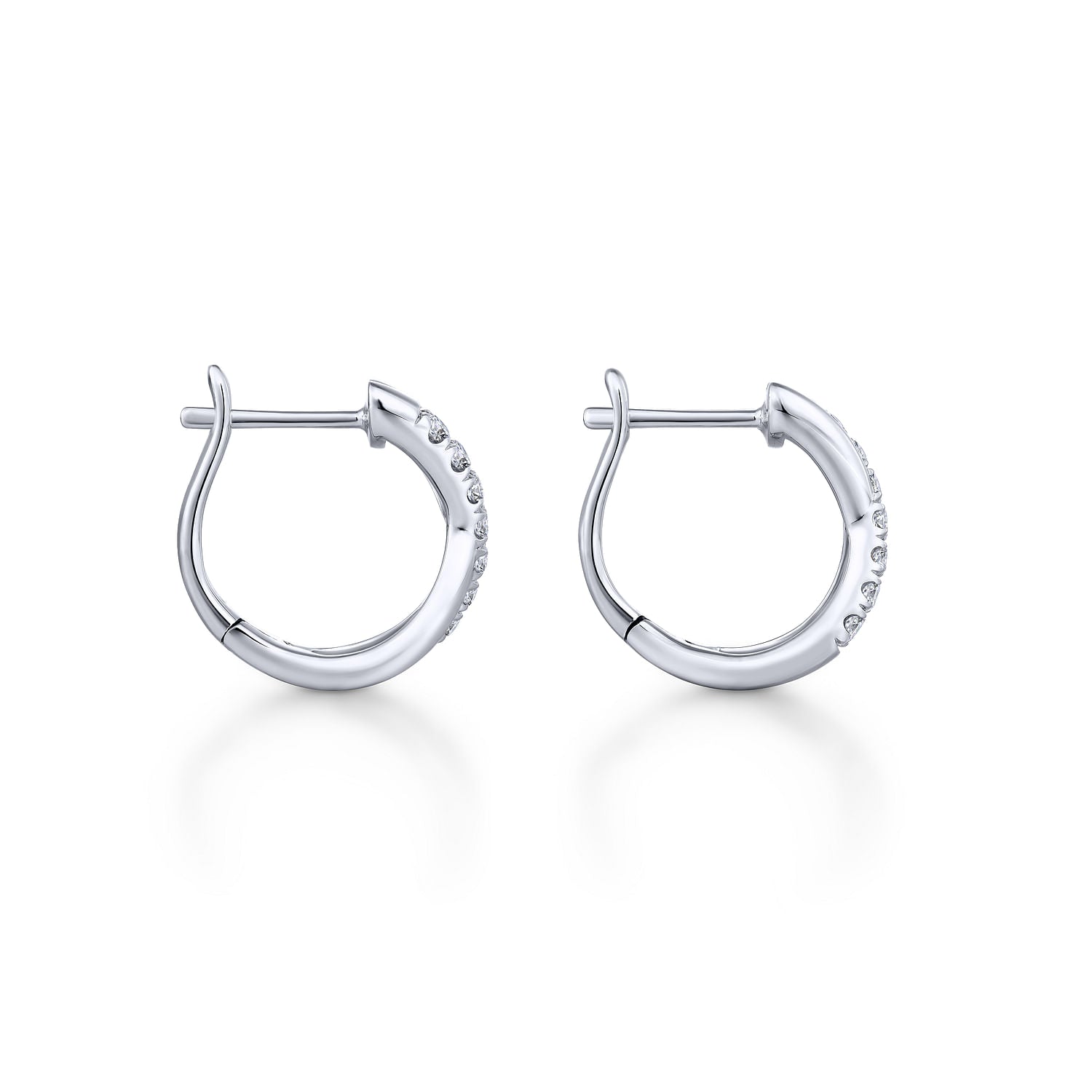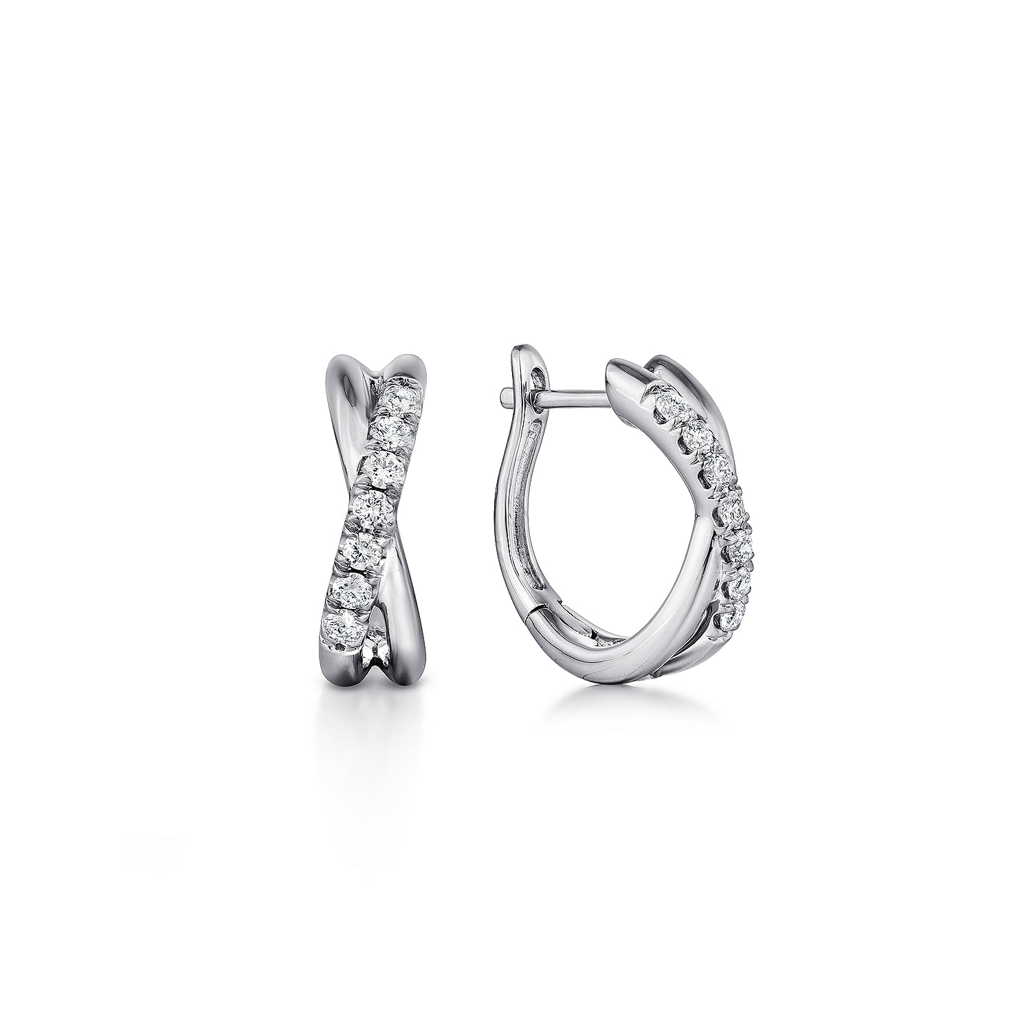 14K White Gold Twisted 15mm Diamond Huggie Earrings