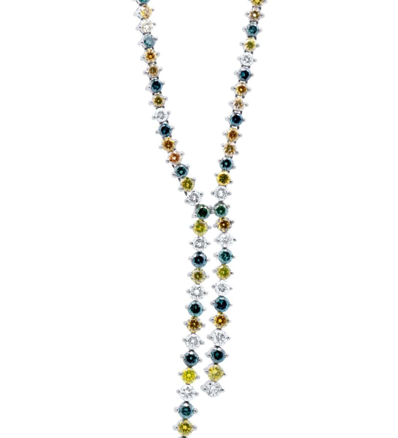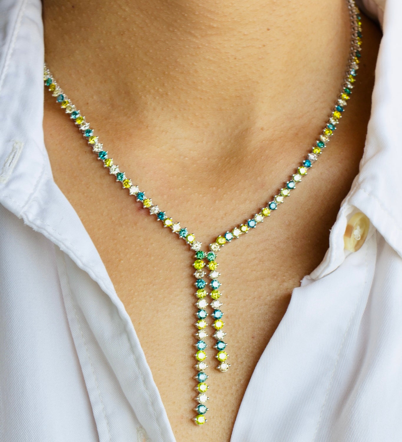 14K White Gold Multi-Color Diamond Necklace | 13.40 CTW Statement Luxury Jewelry