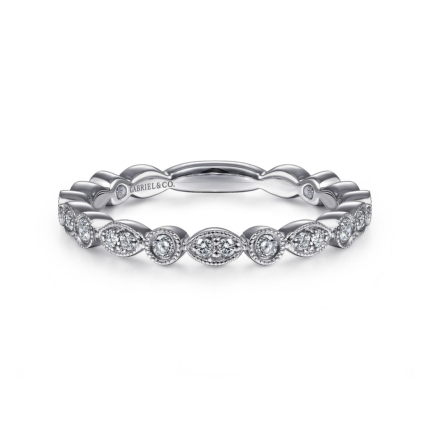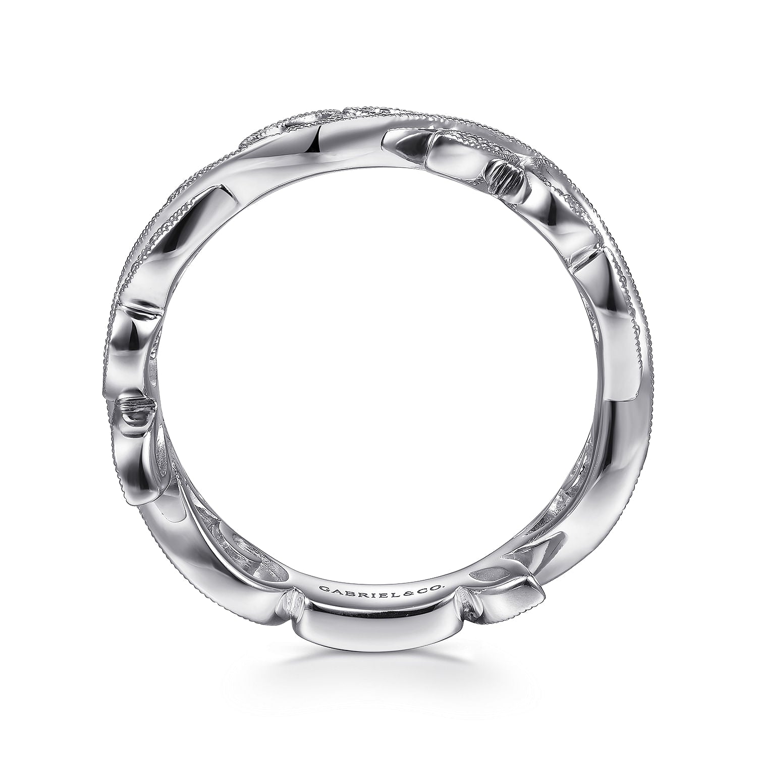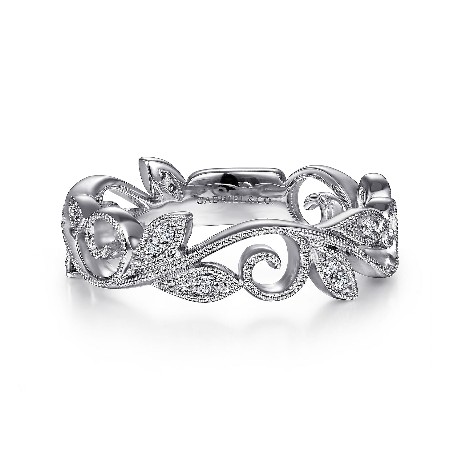 14K White Gold Scrolling Floral Diamond Stackable Ring