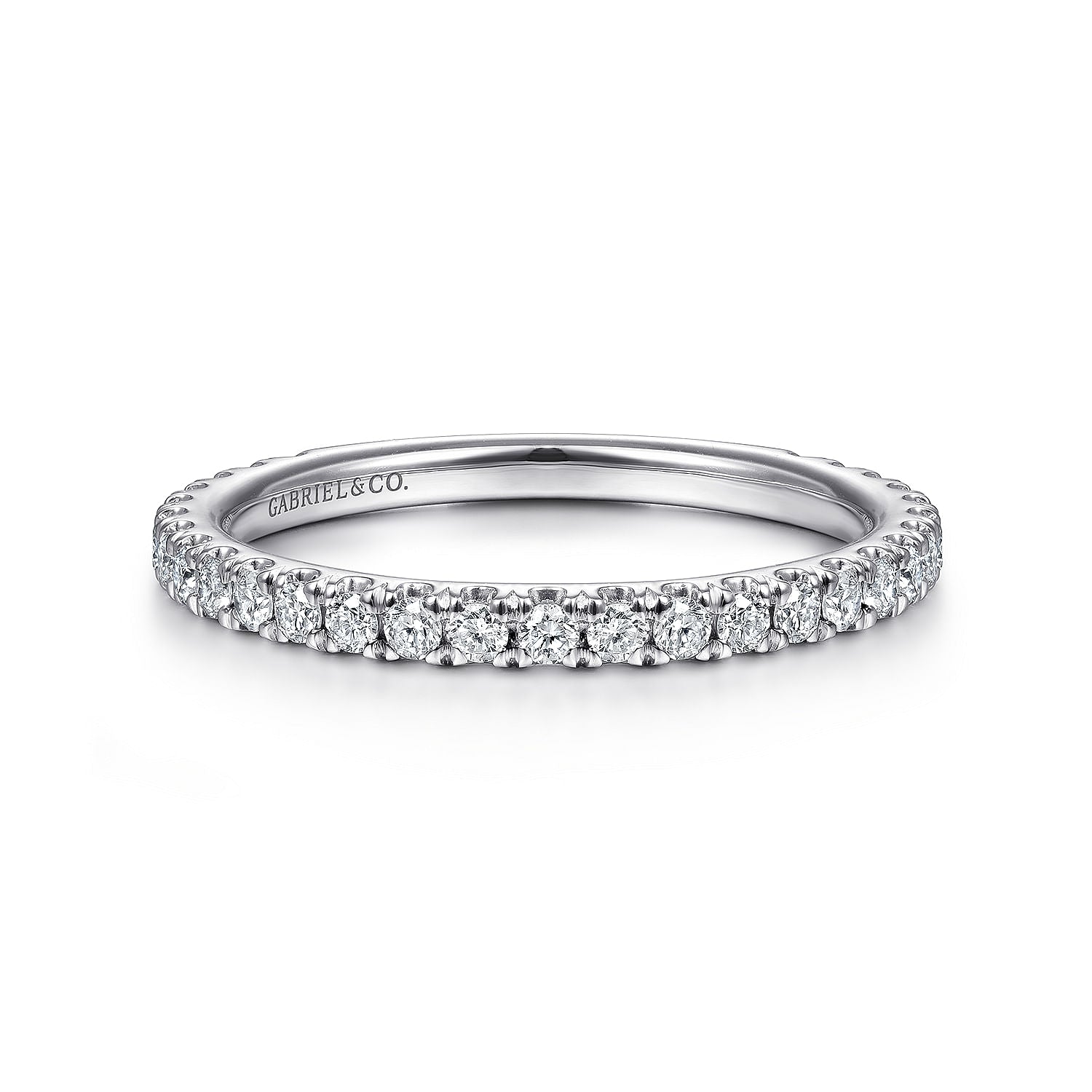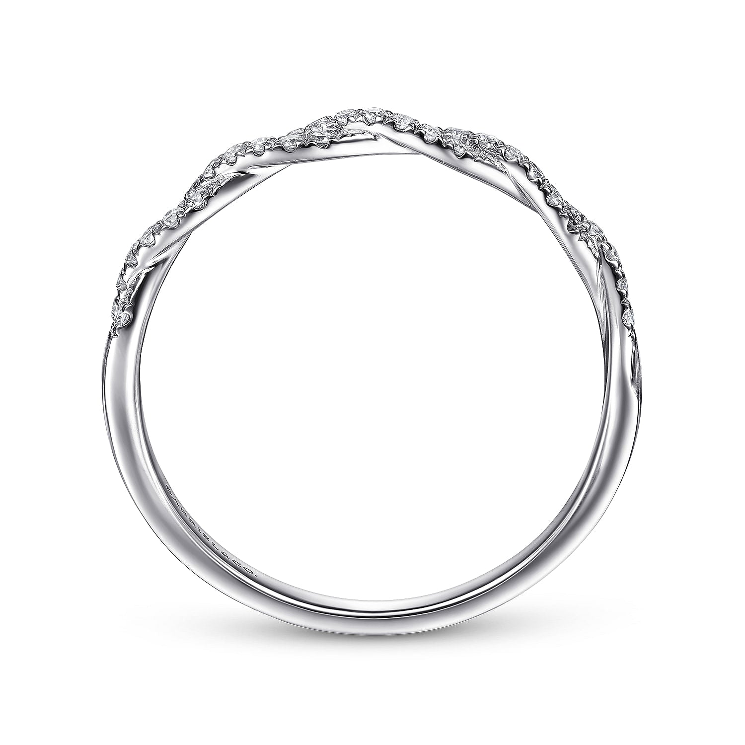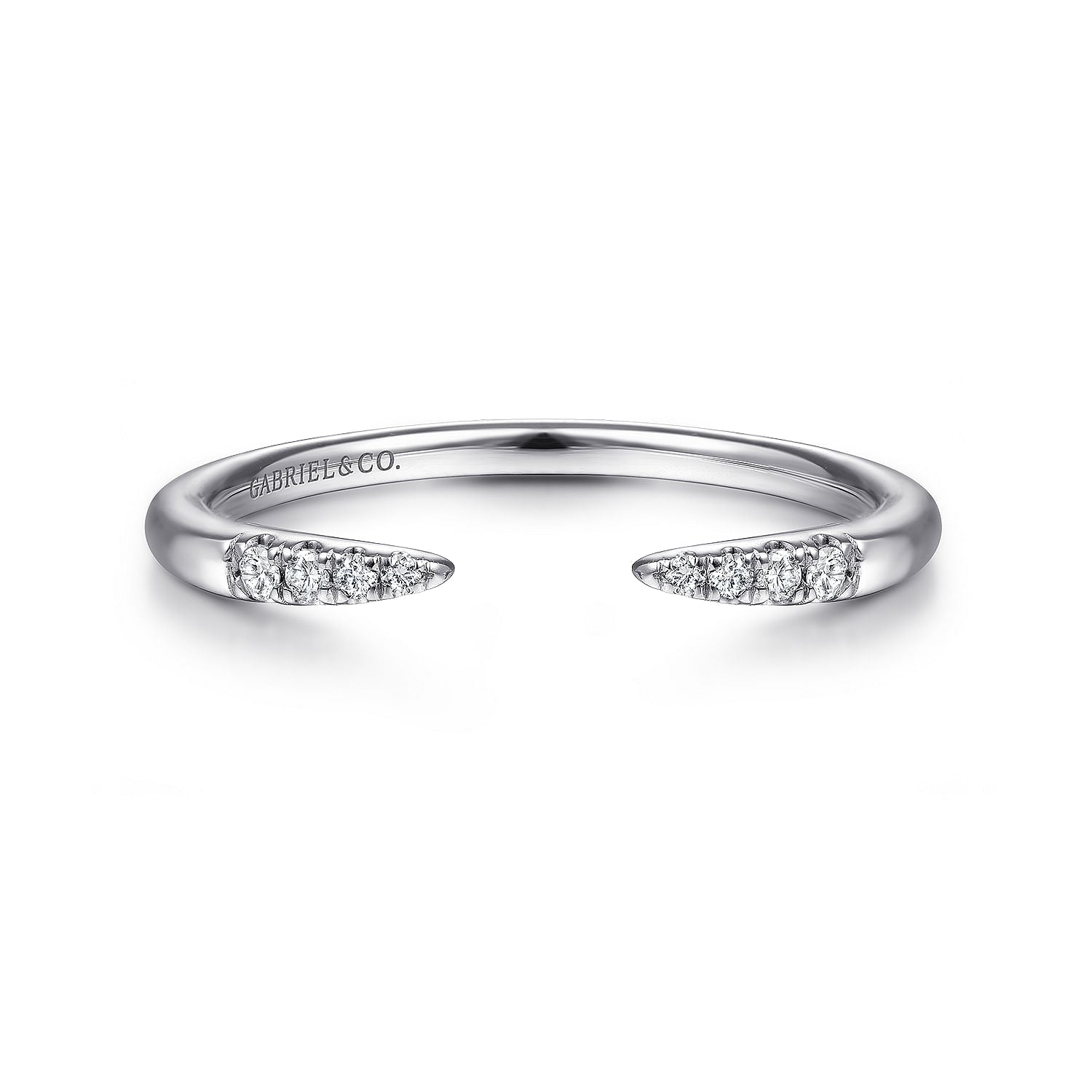 14K White Gold Scrolling Floral Diamond Stackable Ring
