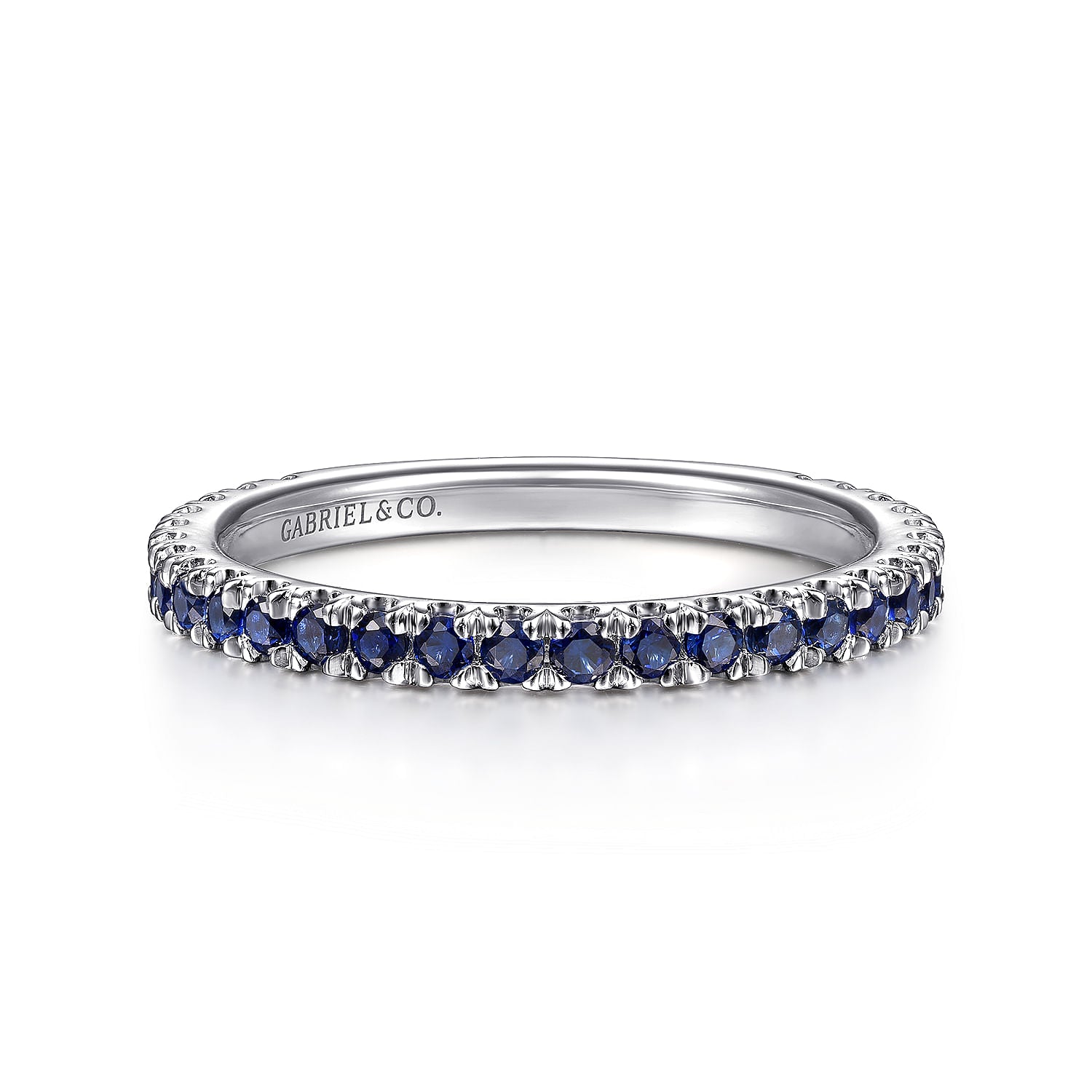 14K White Gold Sapphire Baguette and Diamond Stackable Ring