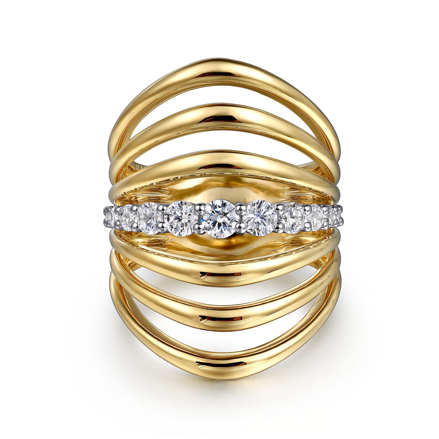 14K White-Yellow Gold Bujukan Diamond Wide Band Ring