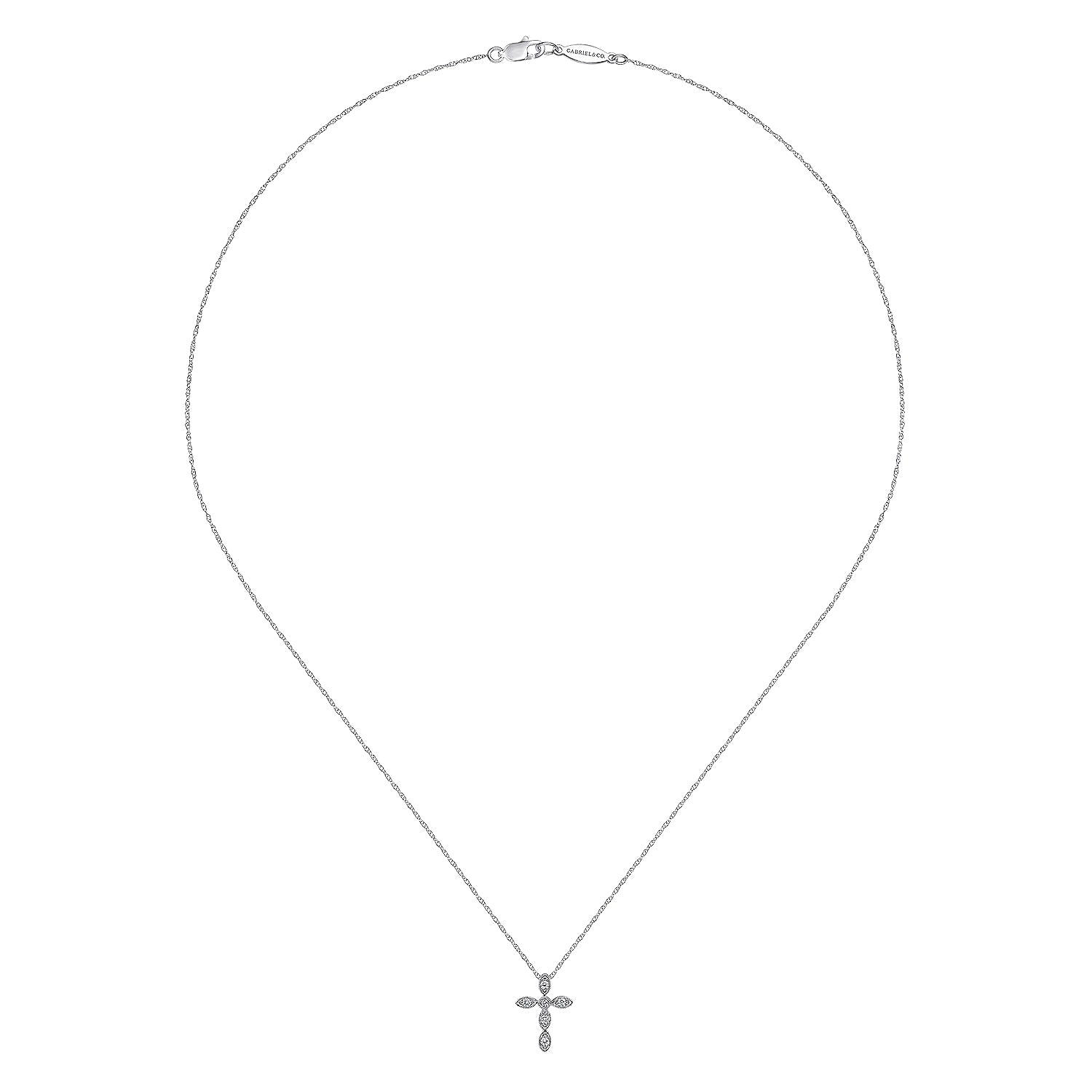 14K White Gold Marquise Shaped Diamond Cross Necklace