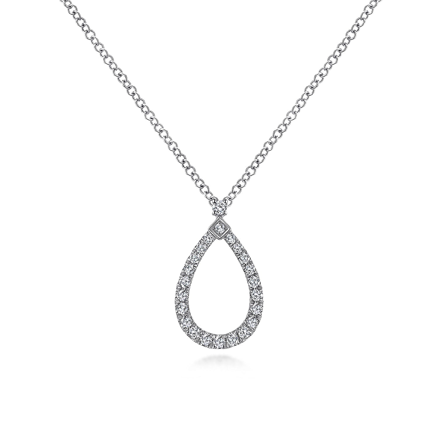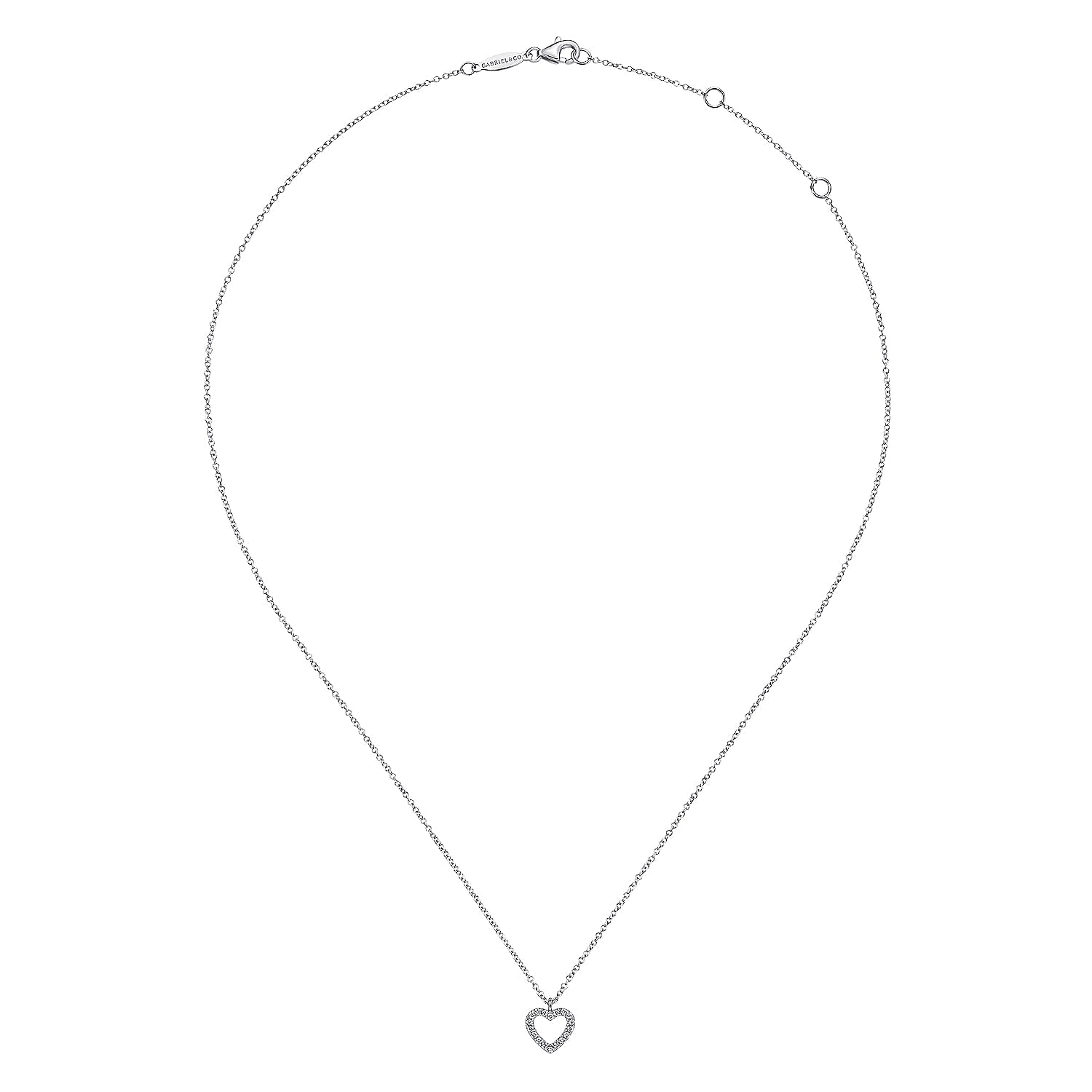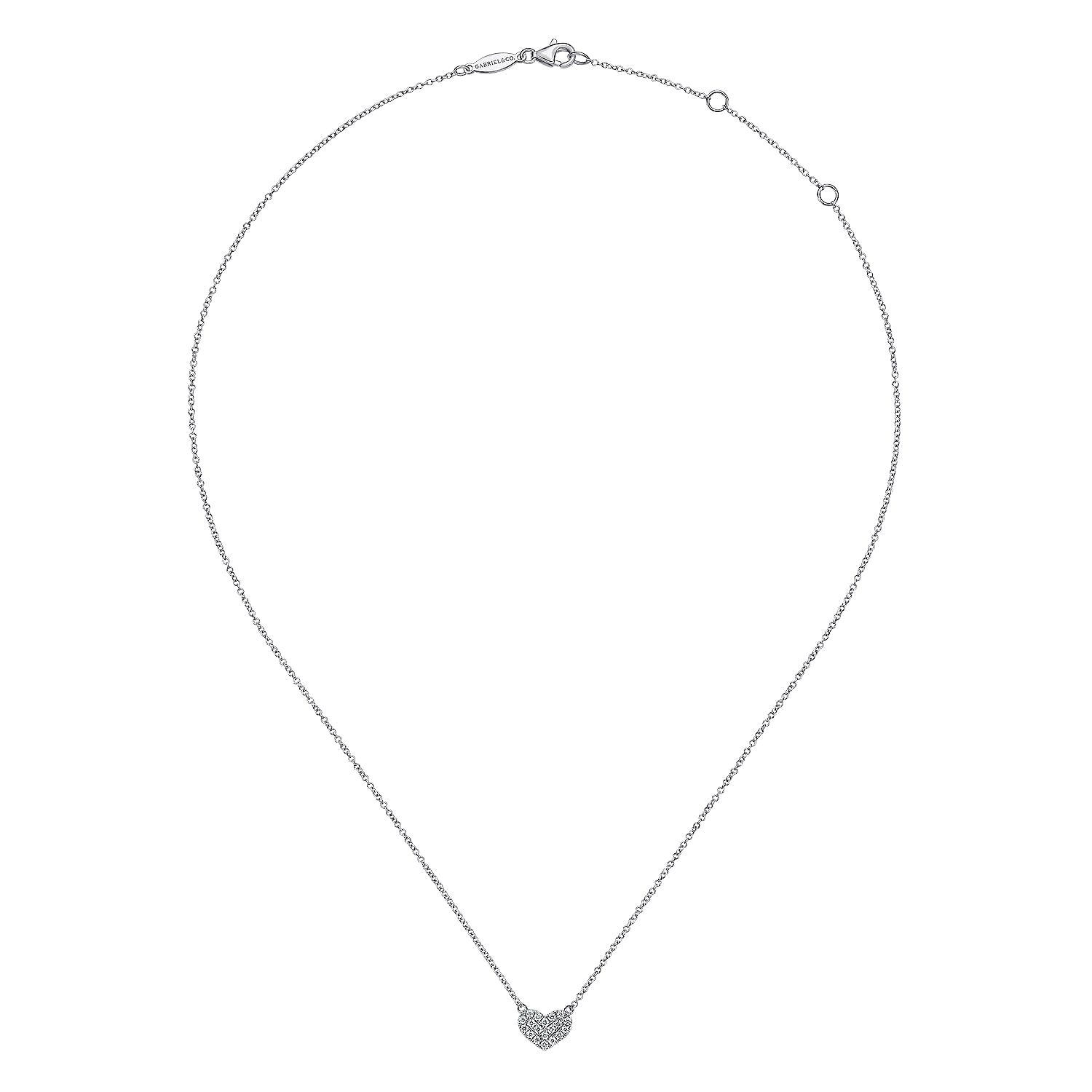 14K White Gold Pavé Diamond Pendant Heart Necklace