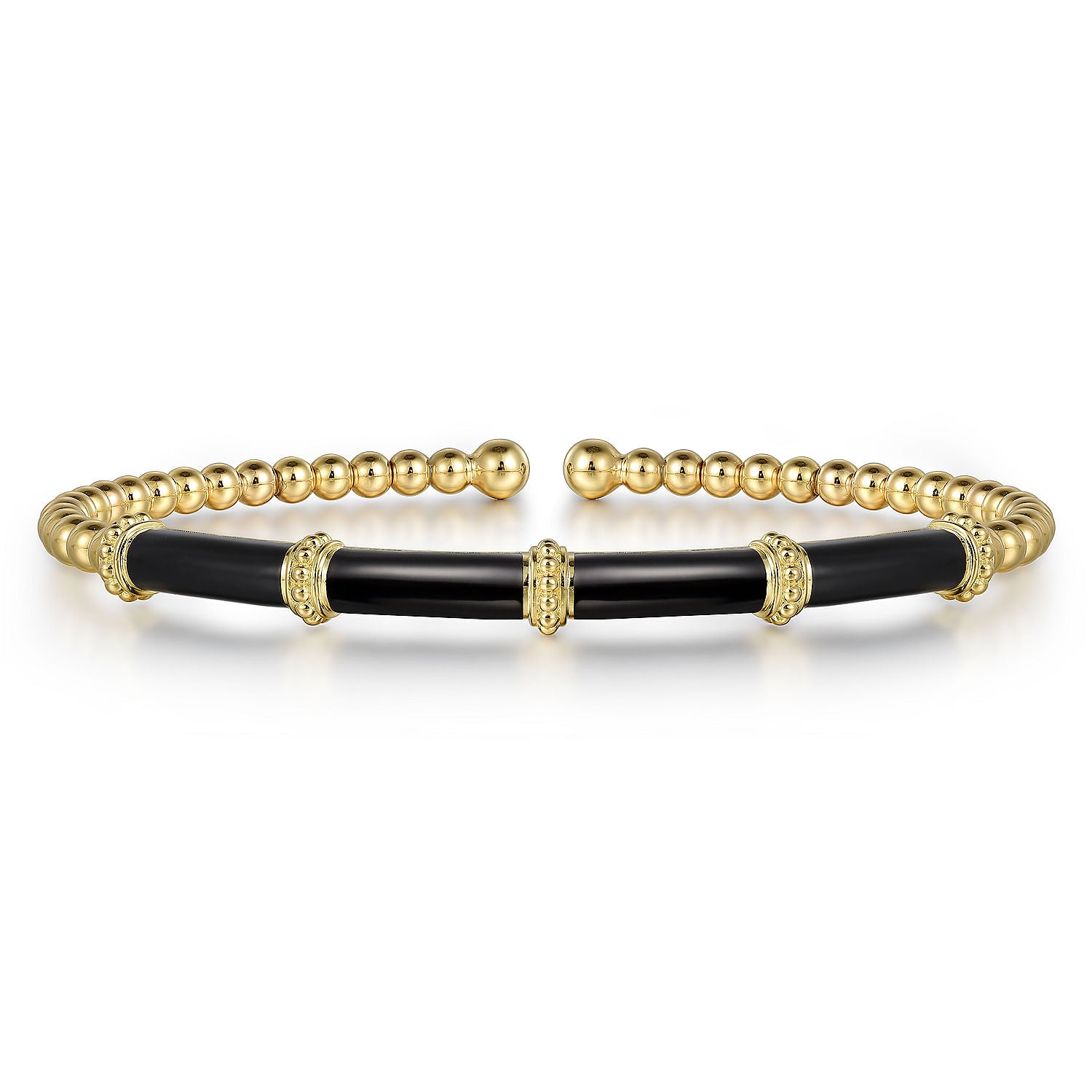 14K Yellow Gold Bujukan Beads Split Bangle with Black Enamel