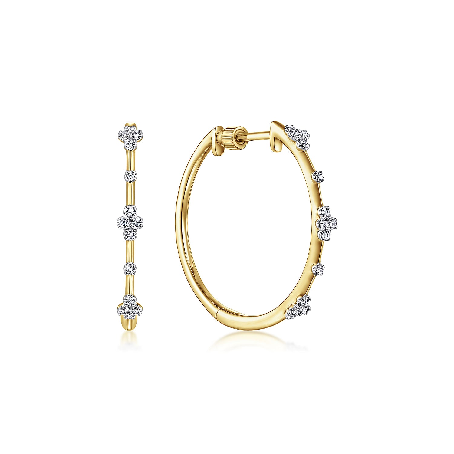 14K Yellow Gold 20mm Round Classic Diamond Hoop Earrings