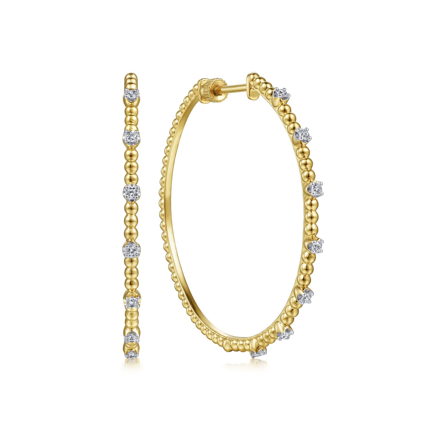 14K Yellow Gold 40mm Bujukan Diamond Classic Hoop Earrings