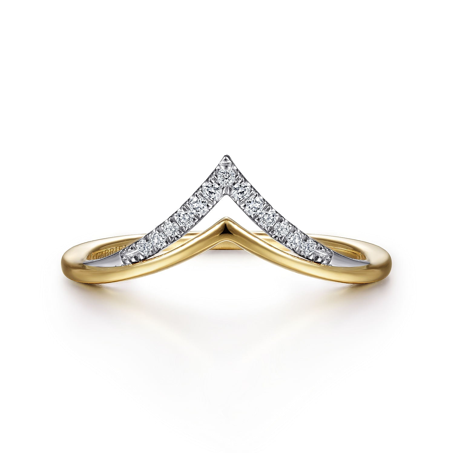 14K White-Yellow Gold Diamond Chevron Stackable Ring