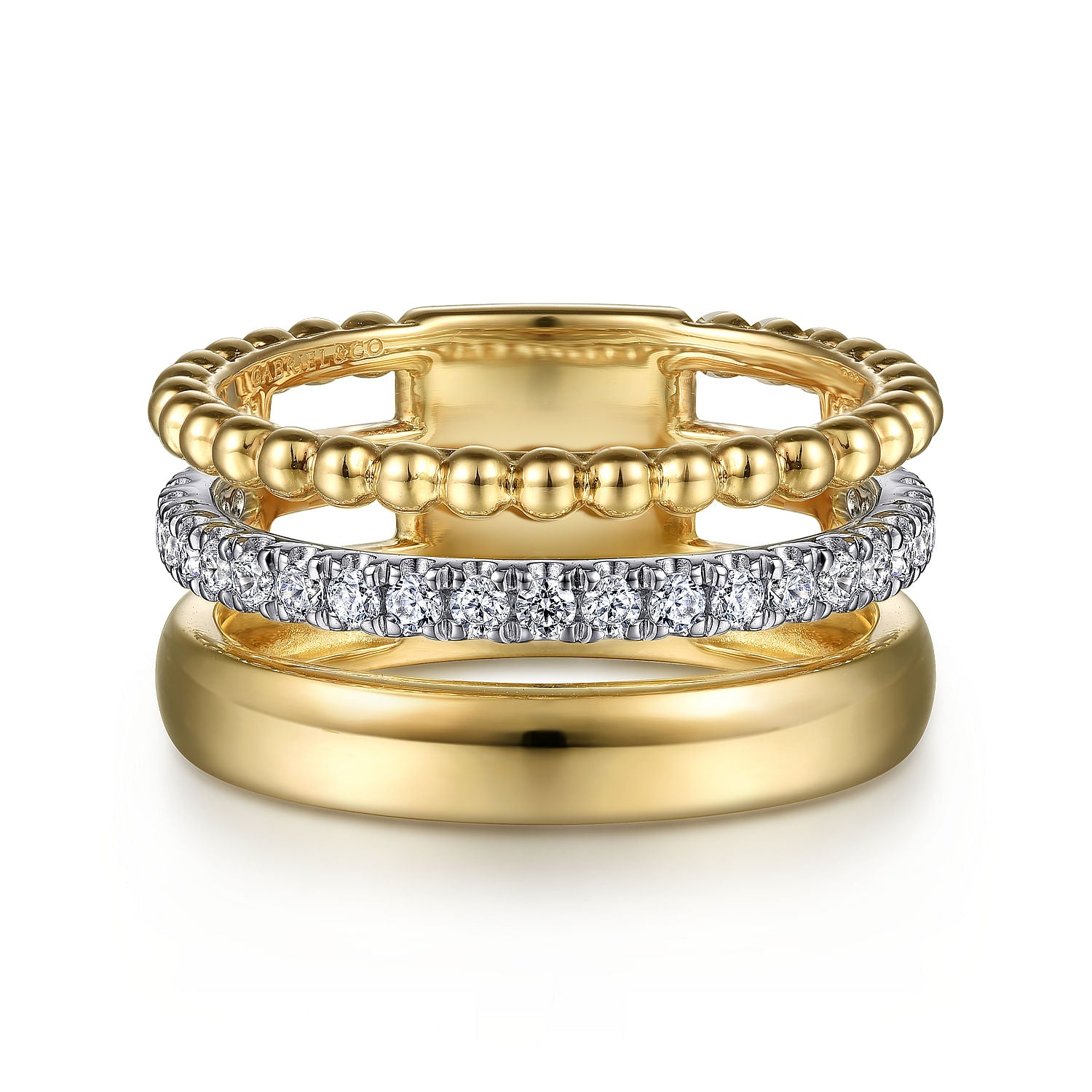 14K White-Yellow Gold Diamond Bujukan Easy Stackable Ring