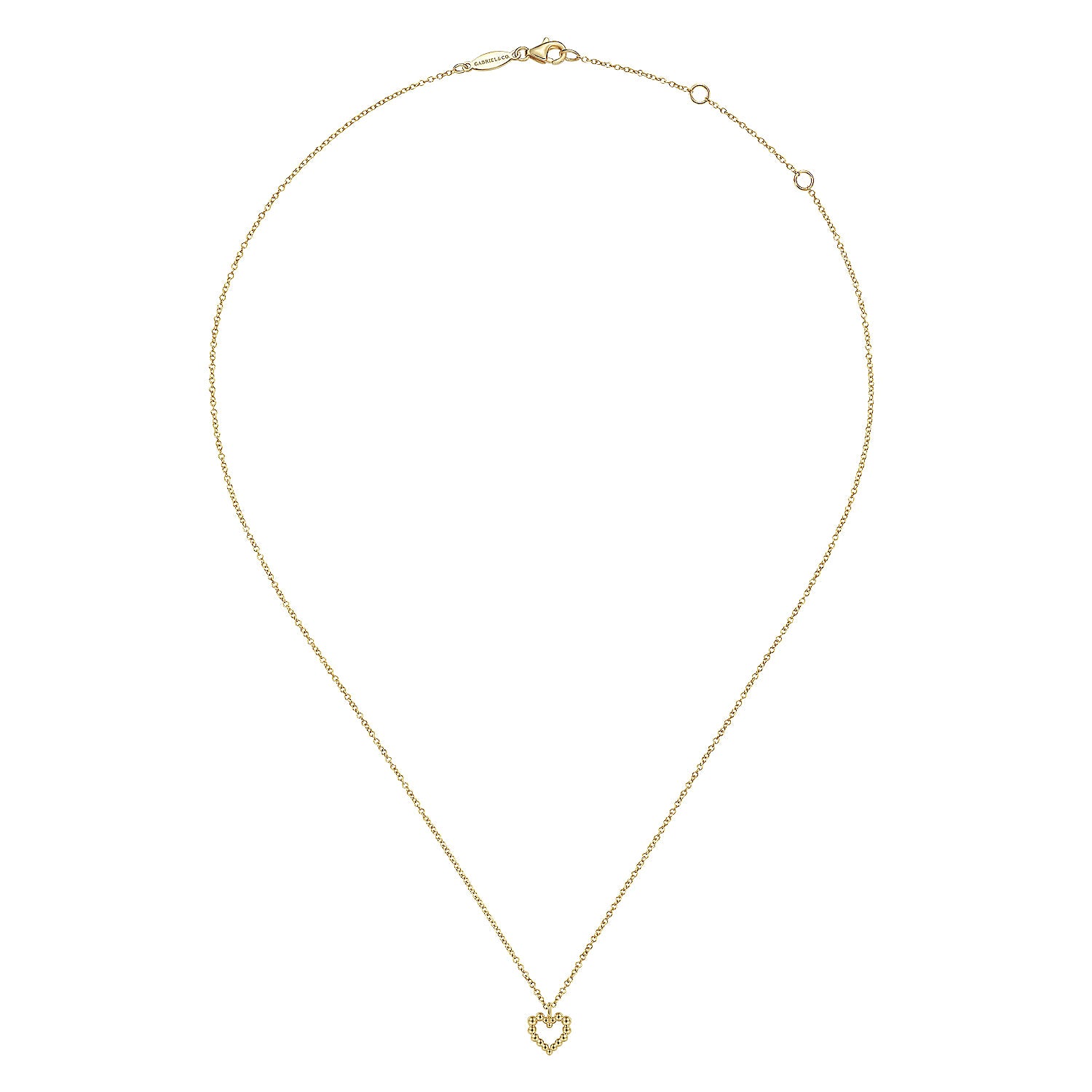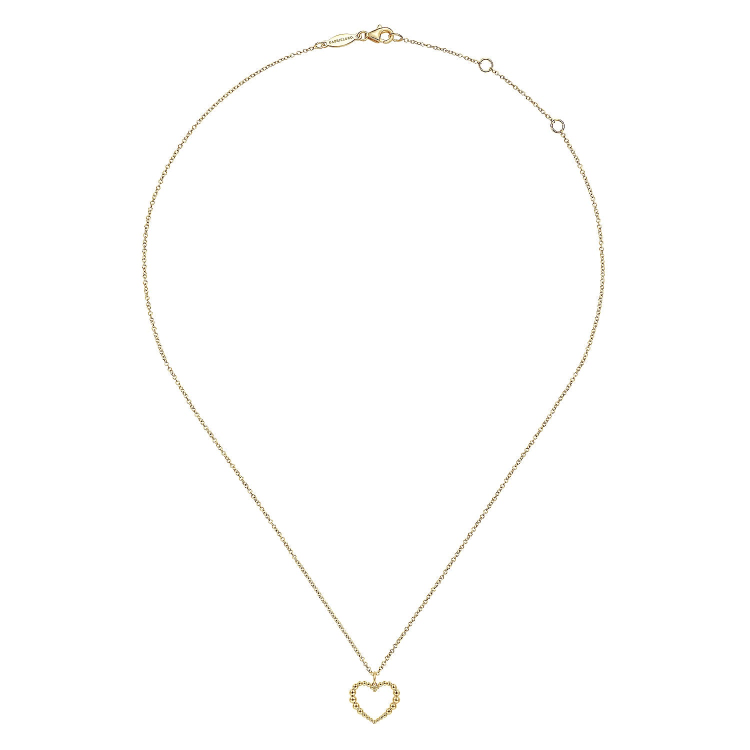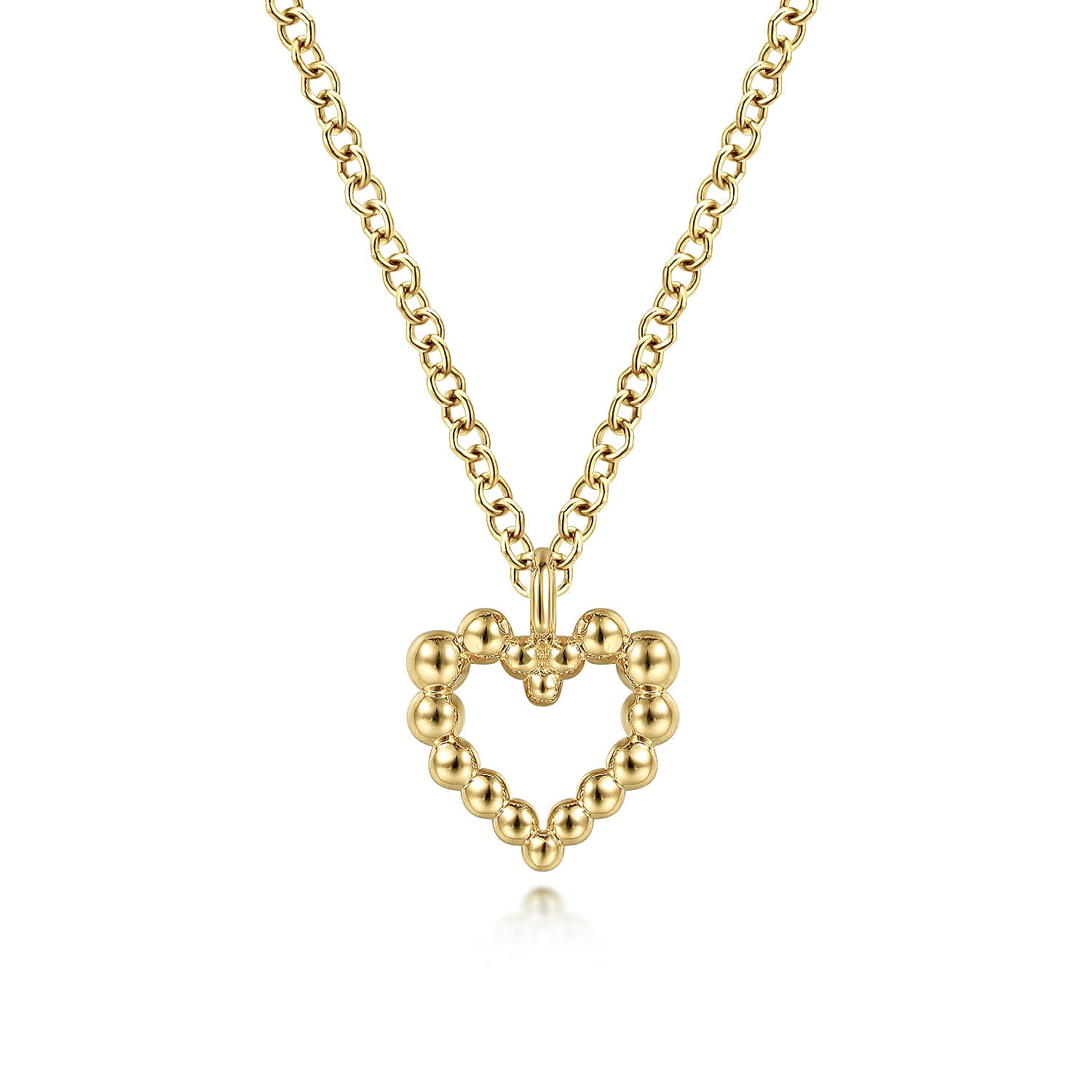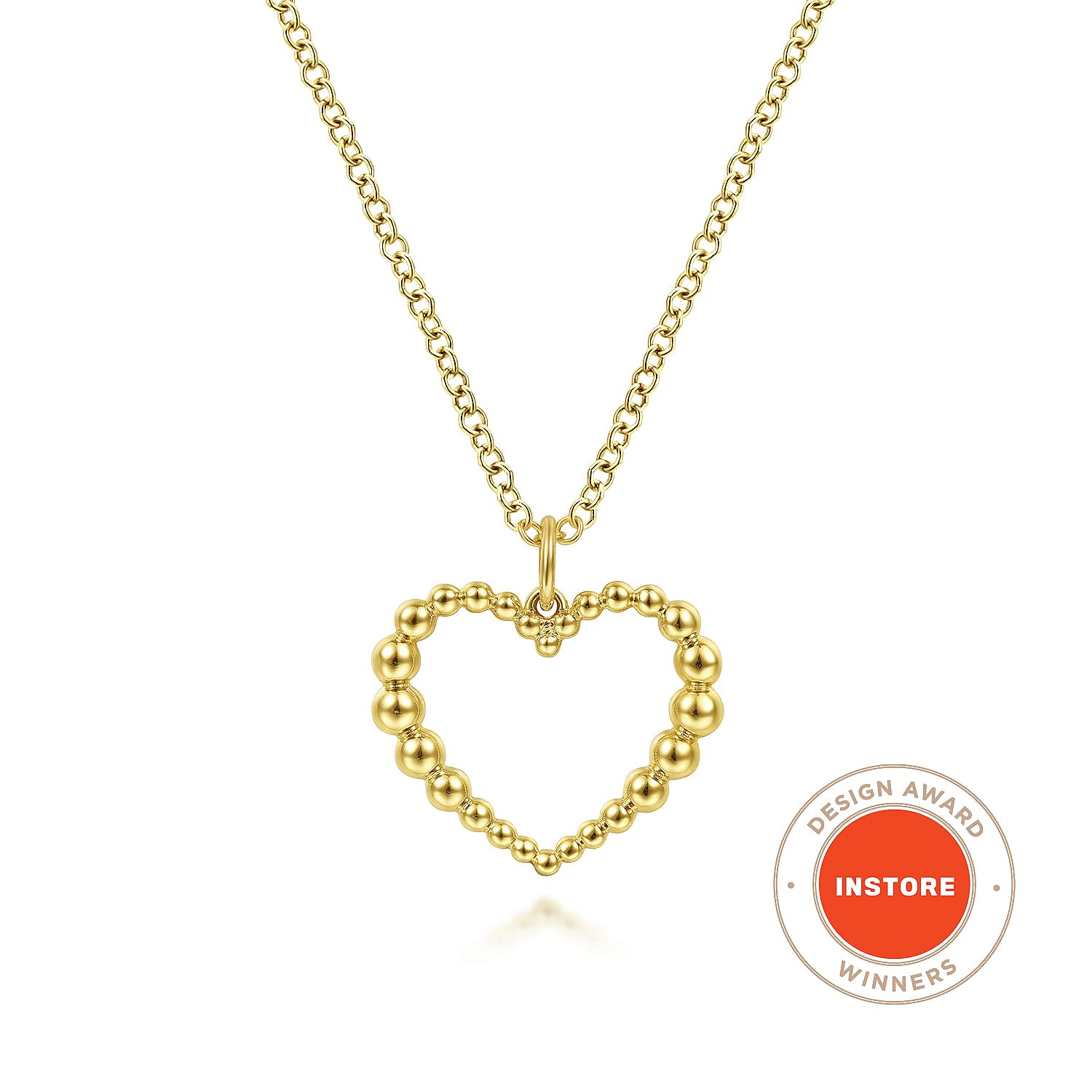 14K Yellow Gold Bujukan Beaded Open Heart Pendant Necklace
