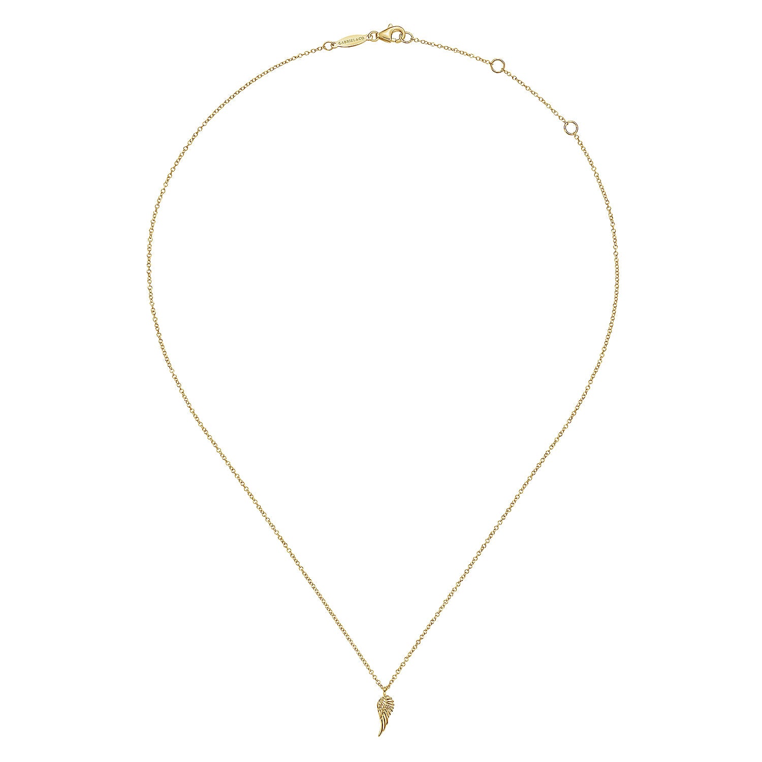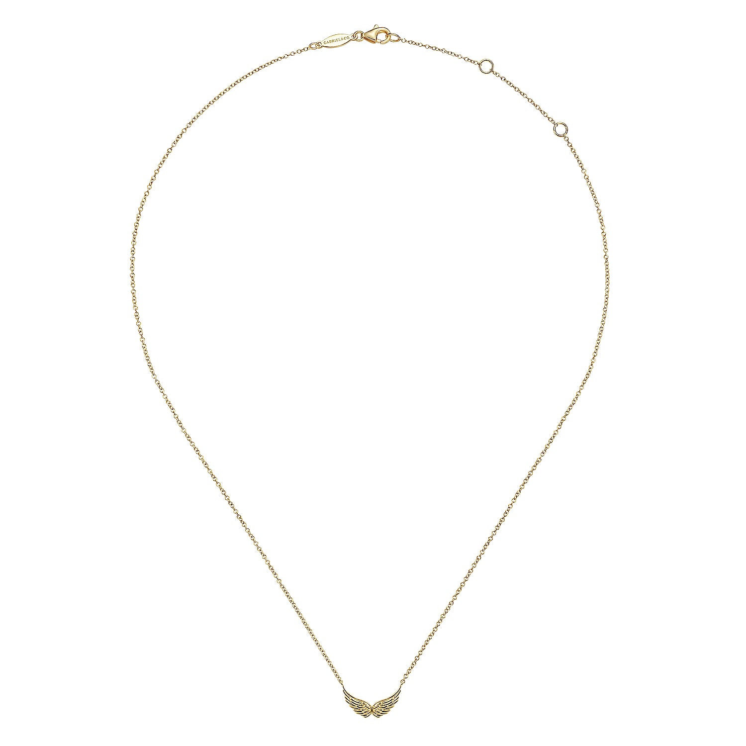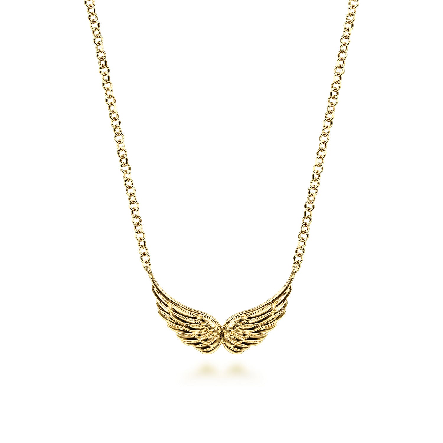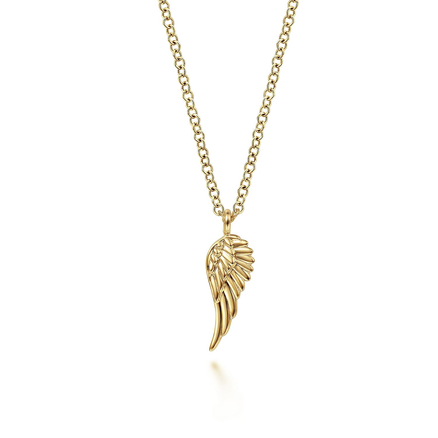 14K Yellow Gold Angel Wing Pendant – 0.14ct Diamond Total Weight