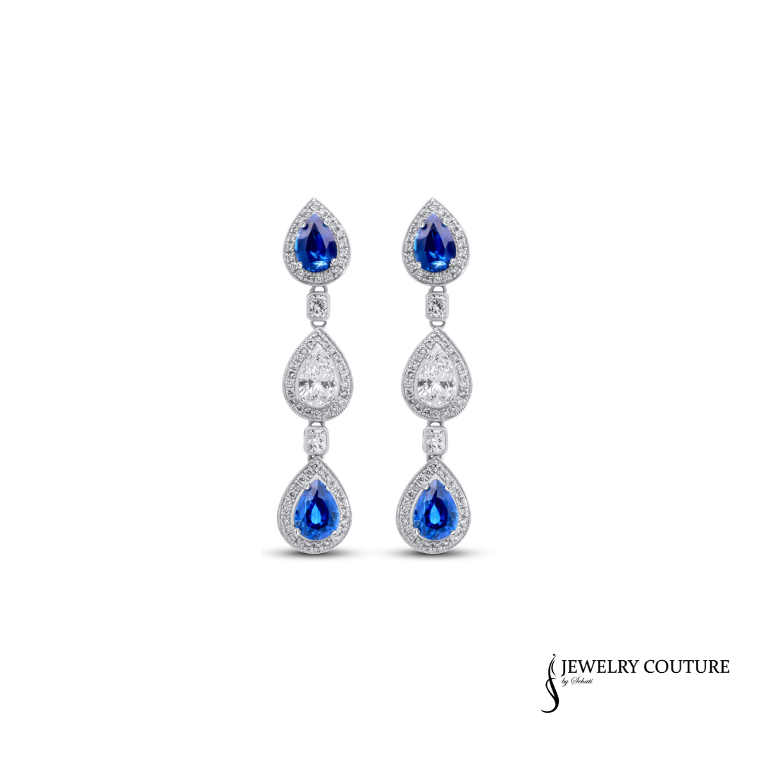 Gentian - 14KT White Gold Pear Blue Sapphire and Diamond Earrings