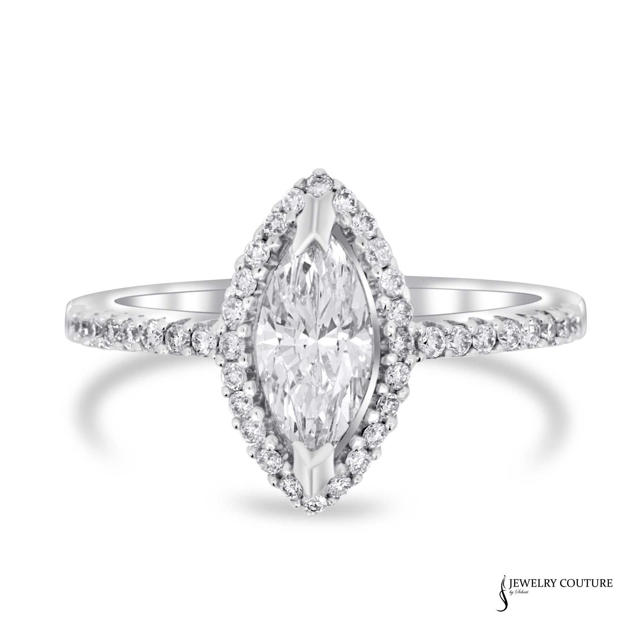 Gardenia - 18KT White Gold Marquise Diamond Engagement Ring