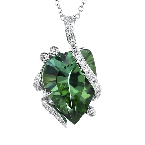 GREEN TOURMALINE PENDANT NECKLACE IN 18K GOLD WITH DIAMONDS