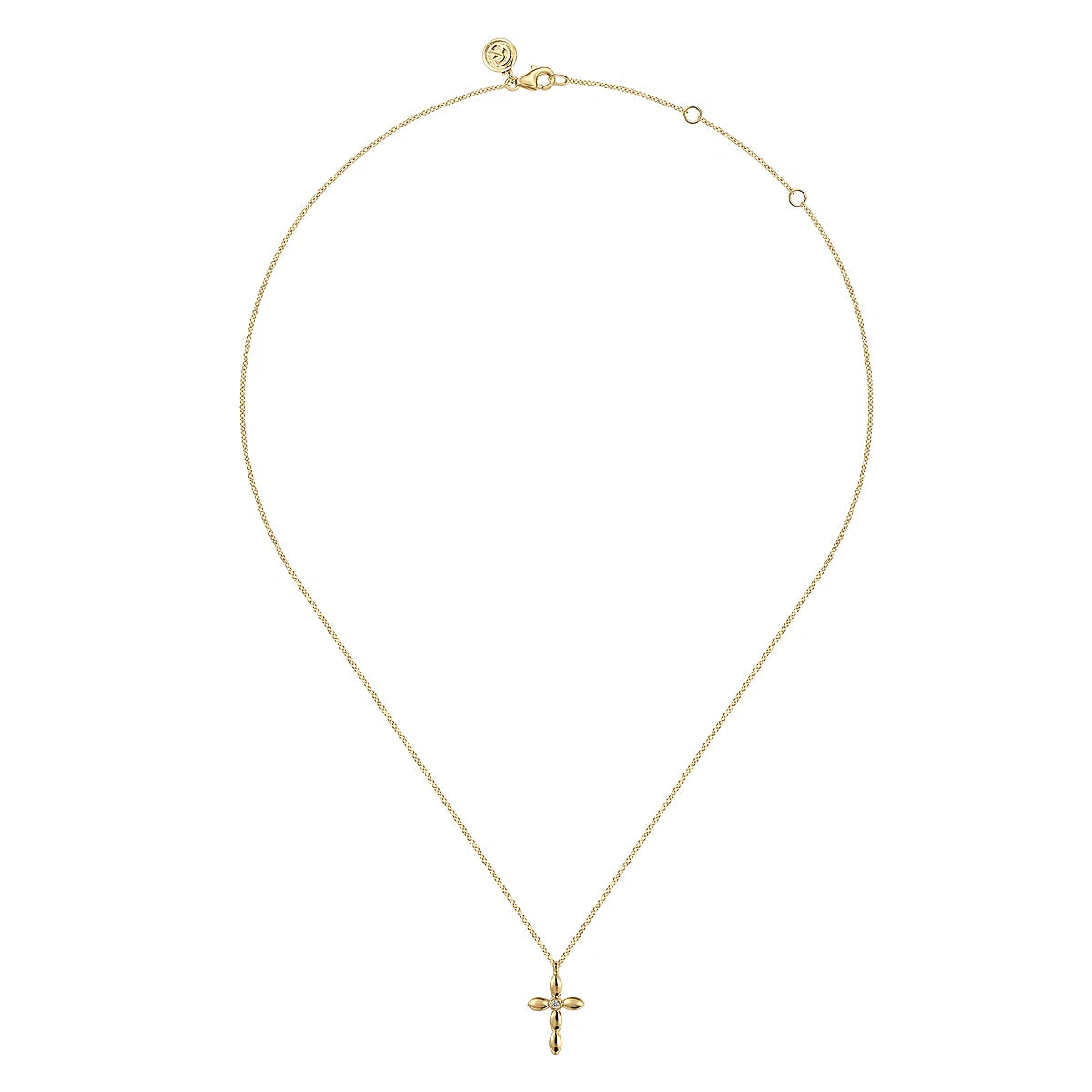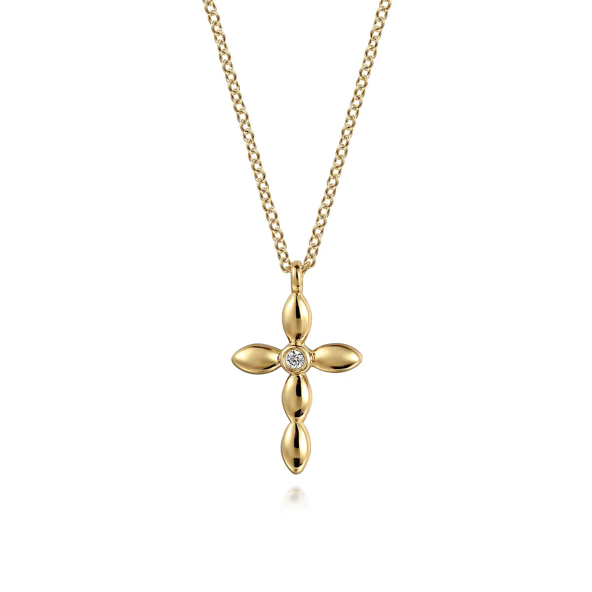 14K Yellow Gold Diamond Cross Pendant Necklace