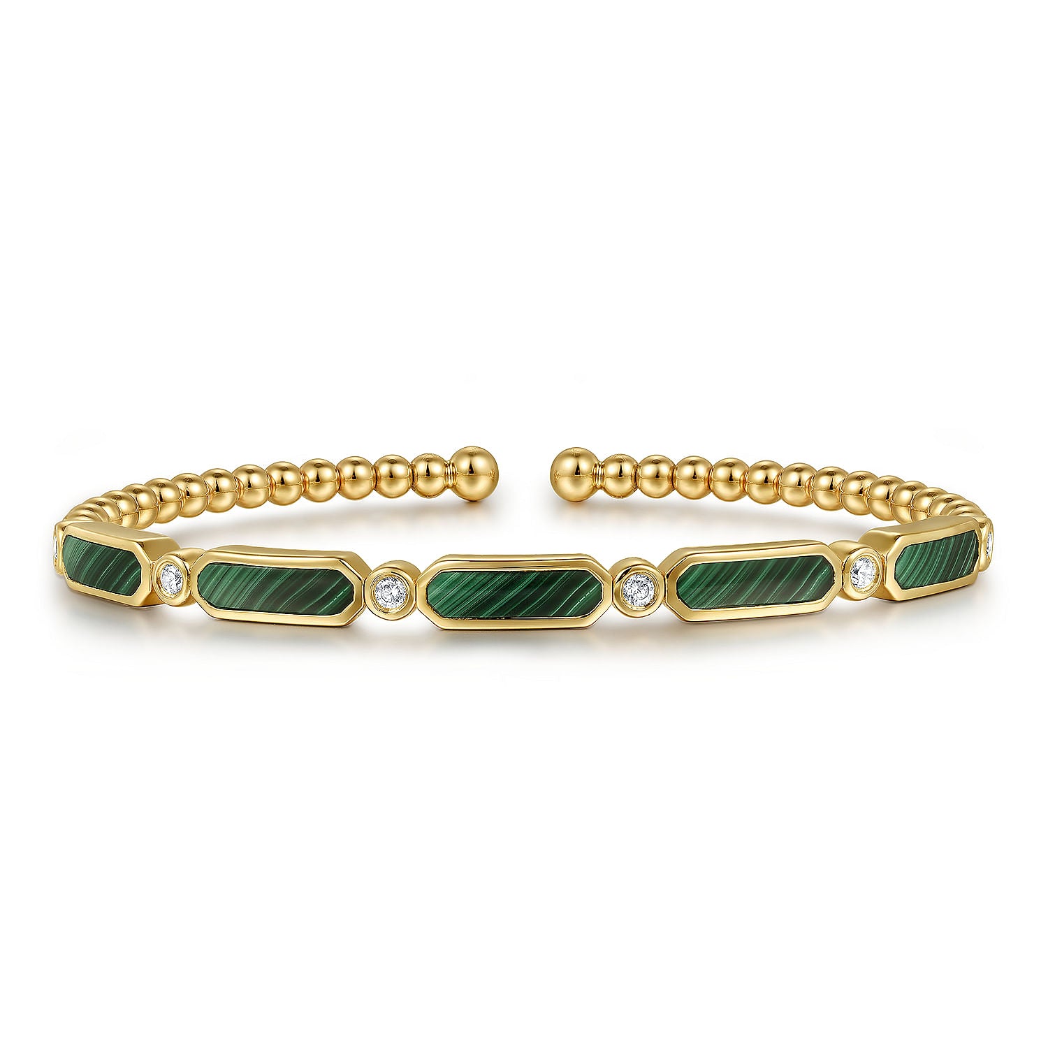 14K Yellow Gold Diamond and Malachite Bujukan Bangle