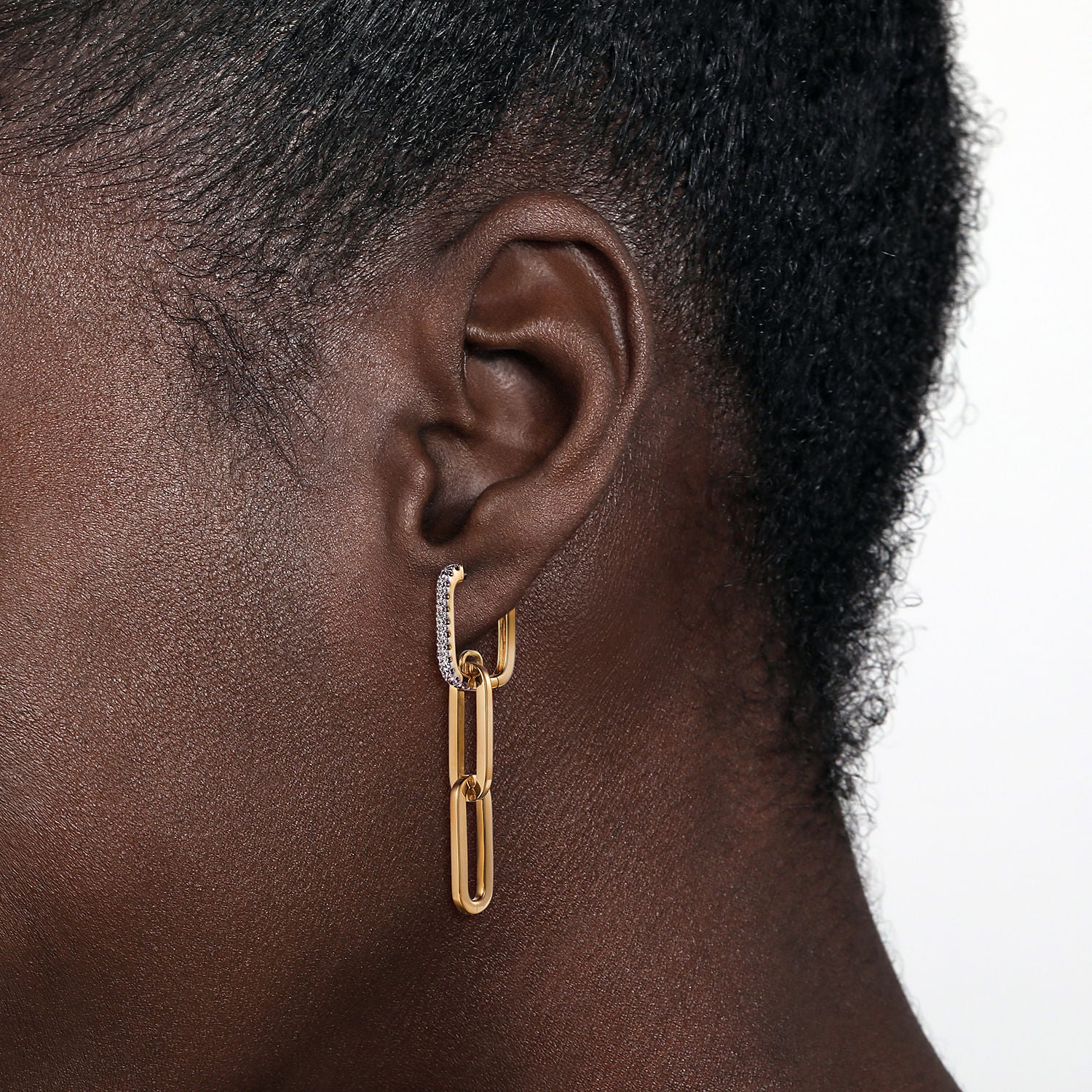14K Yellow Gold Diamond Link Hollow Chain Drop Earrings