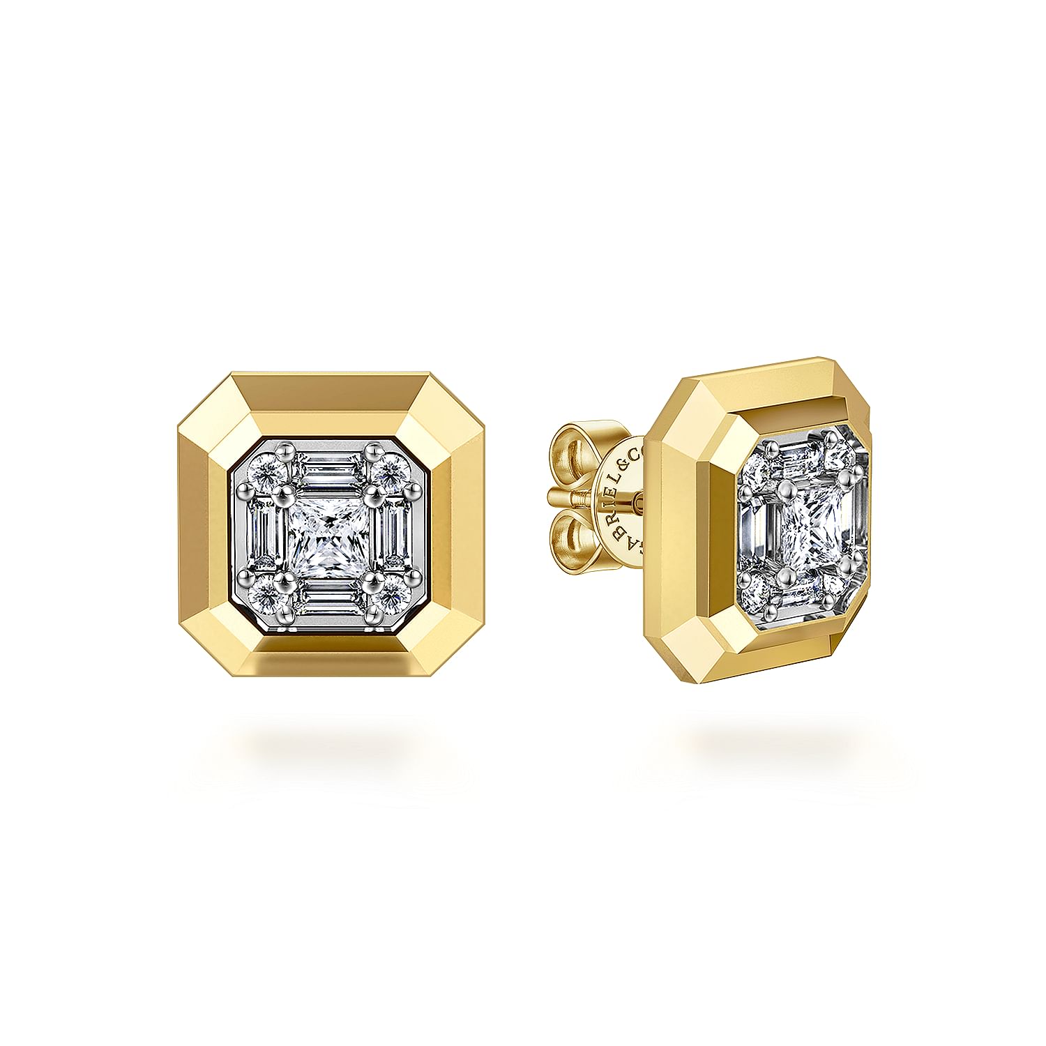 14K Yellow Gold Diamond and Spike Drop Earrings