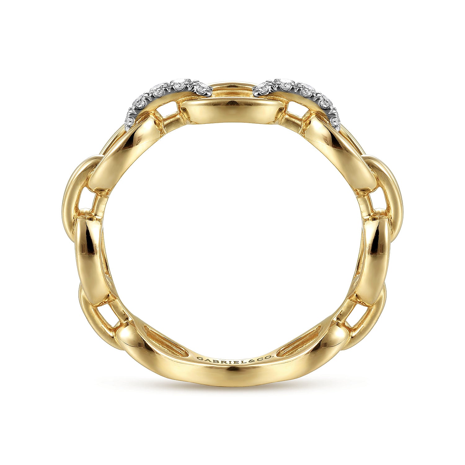 14K Yellow Gold Diamond Link Chain Ladies Ring