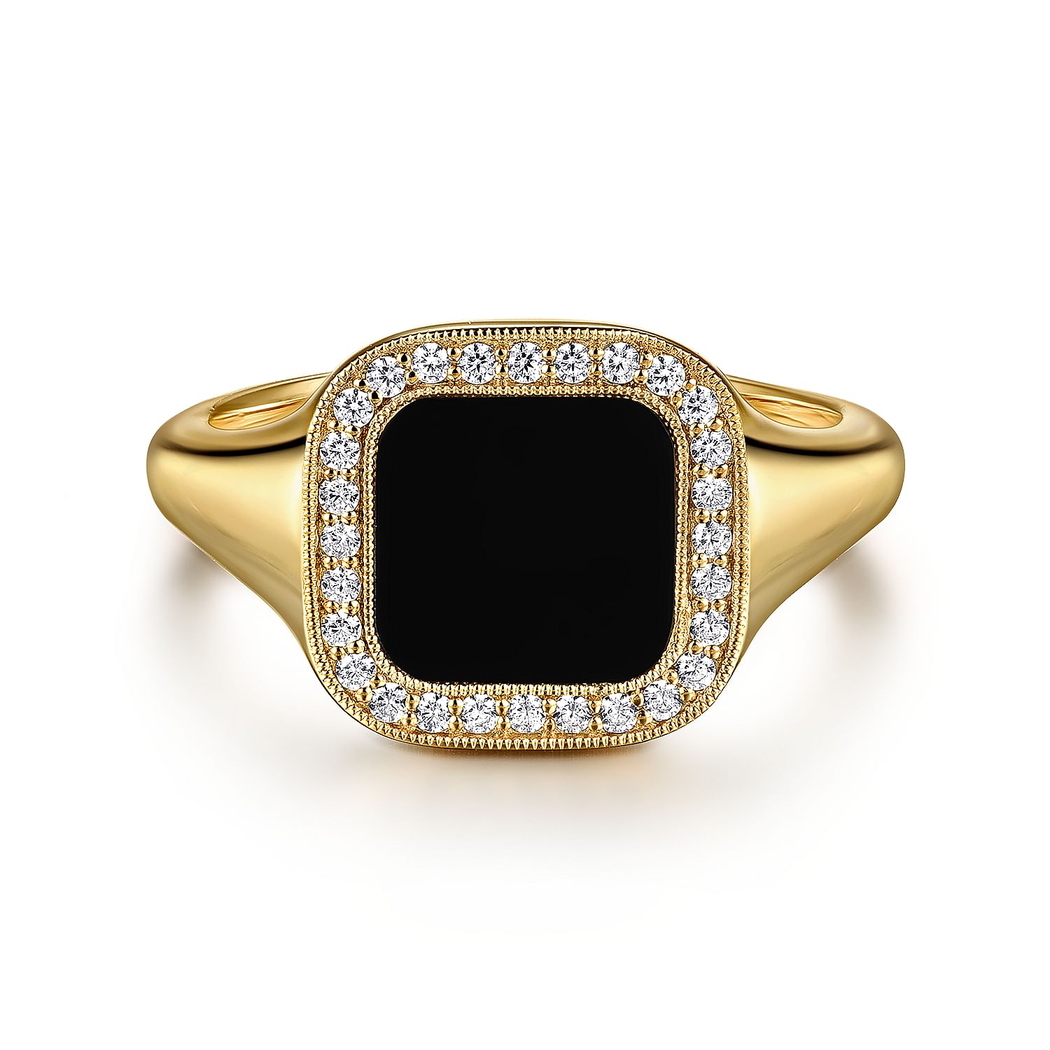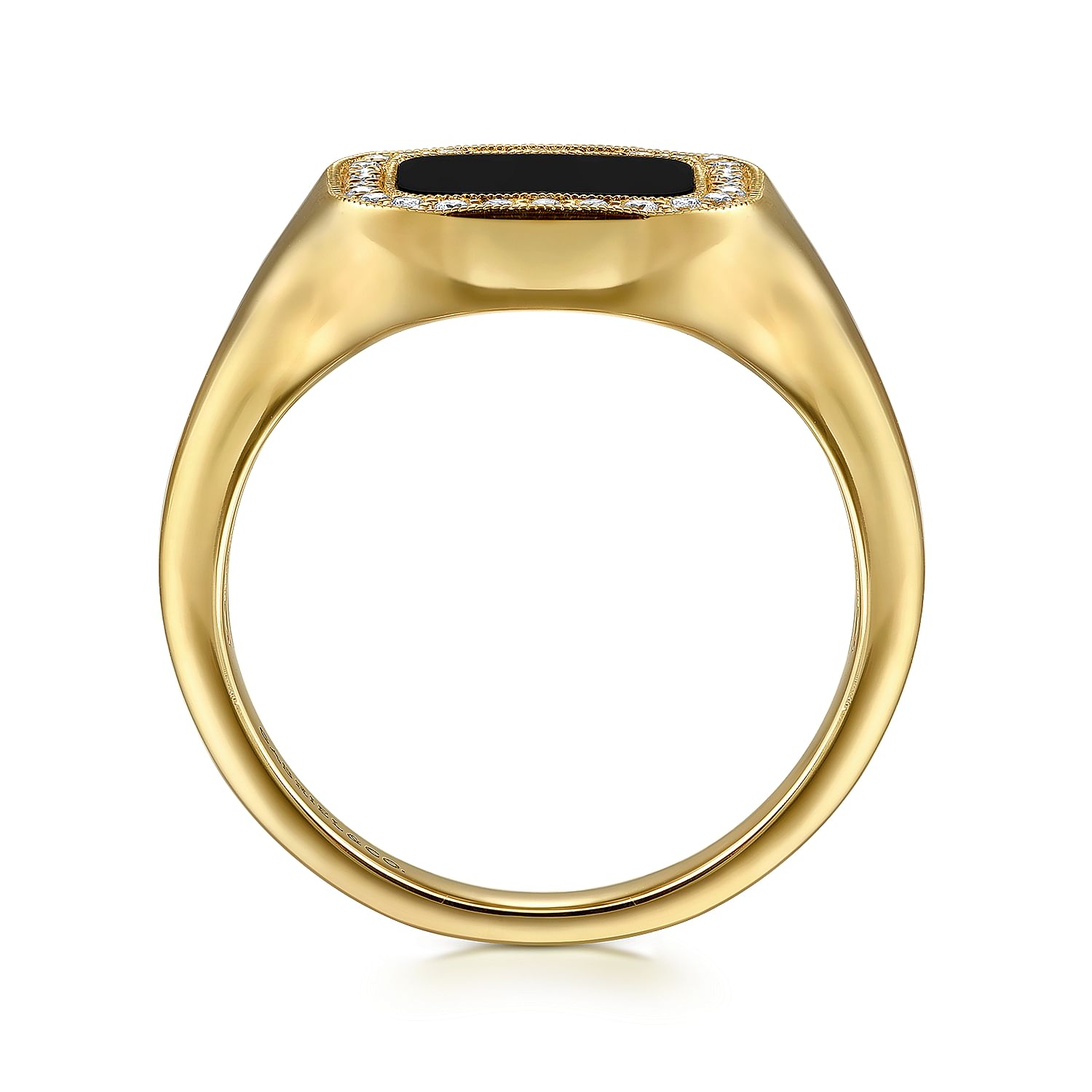 14K Yellow Gold Diamond and Onyx Mens Ring in High Polished Finish