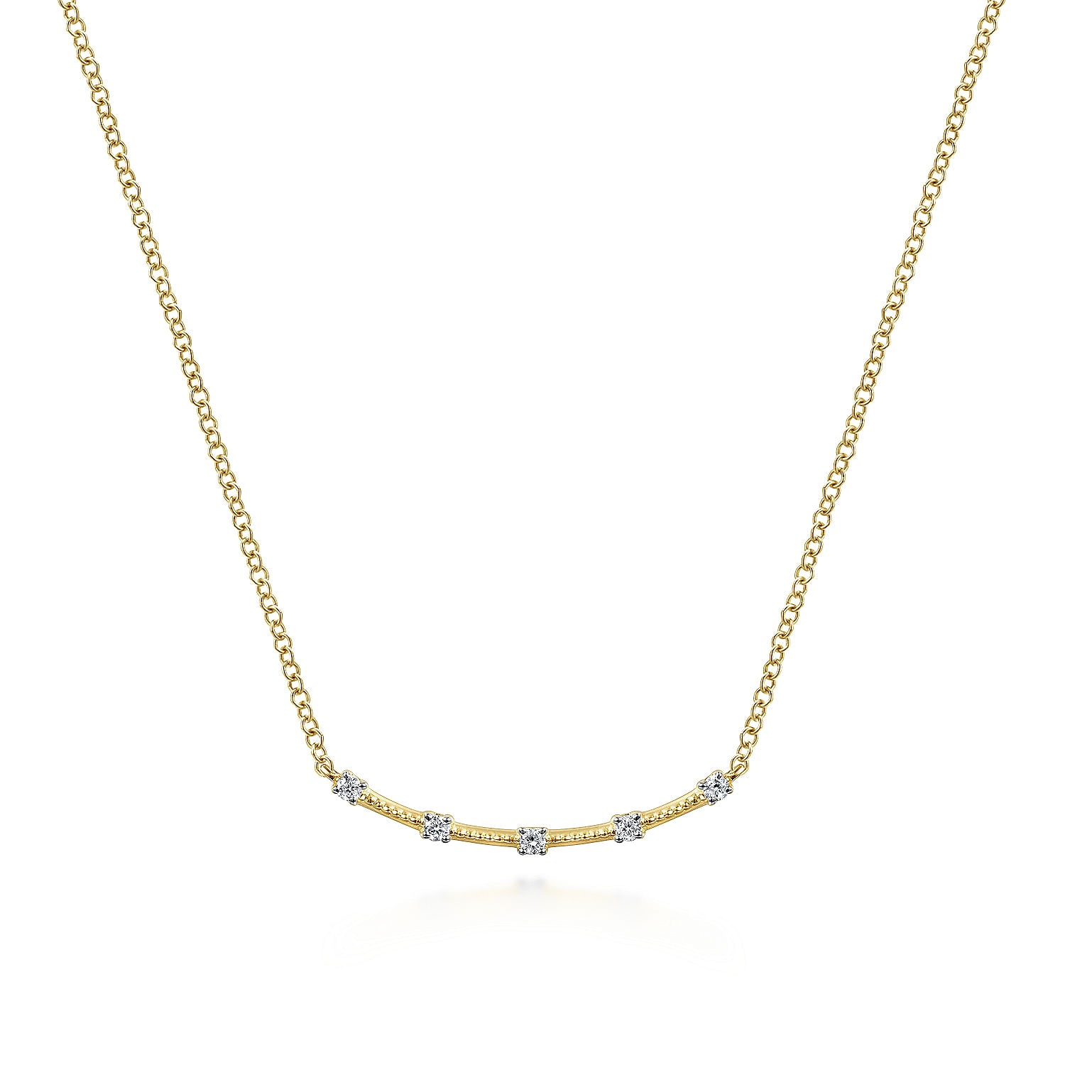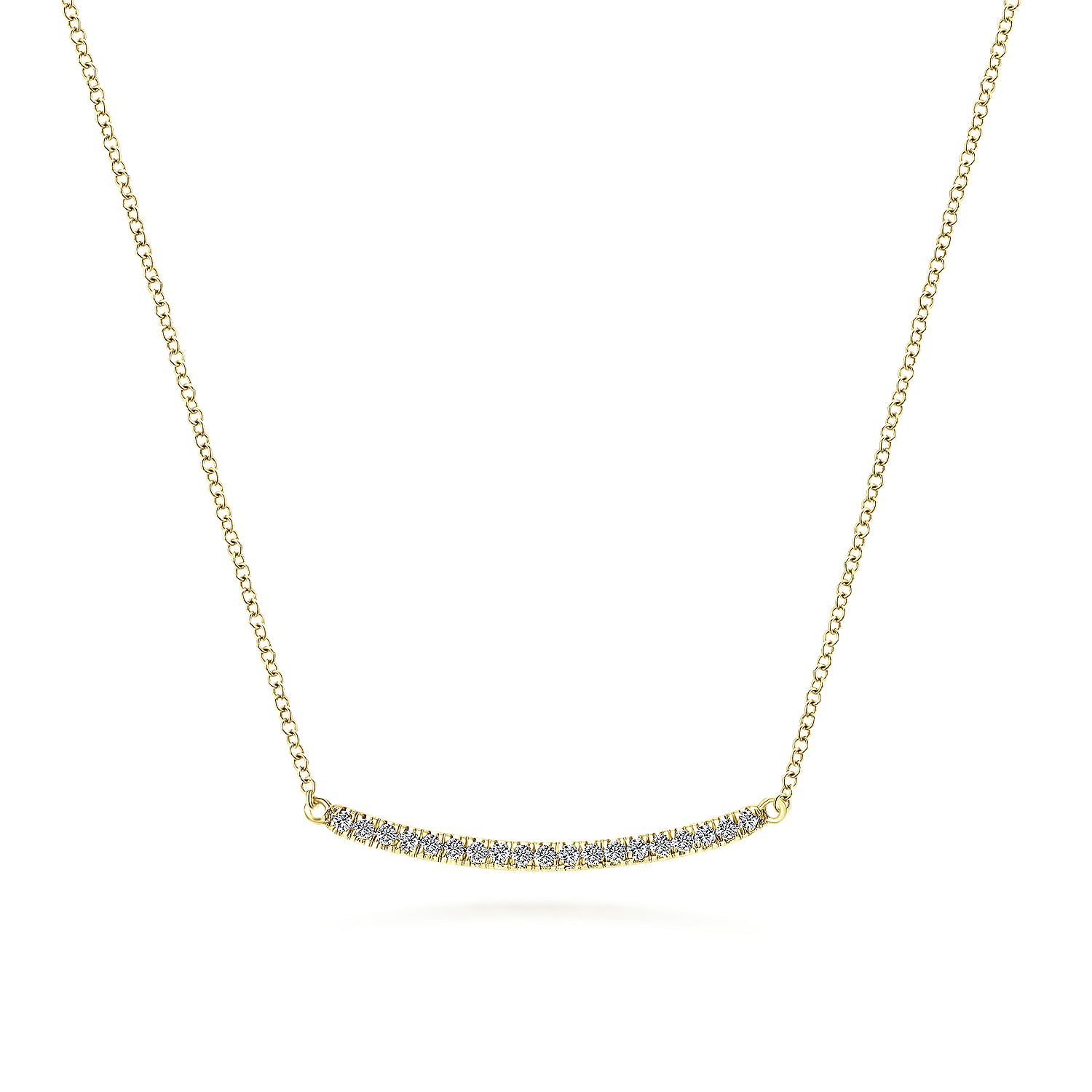 14K Yellow Gold Diamond Pavé Curved Bar Necklace