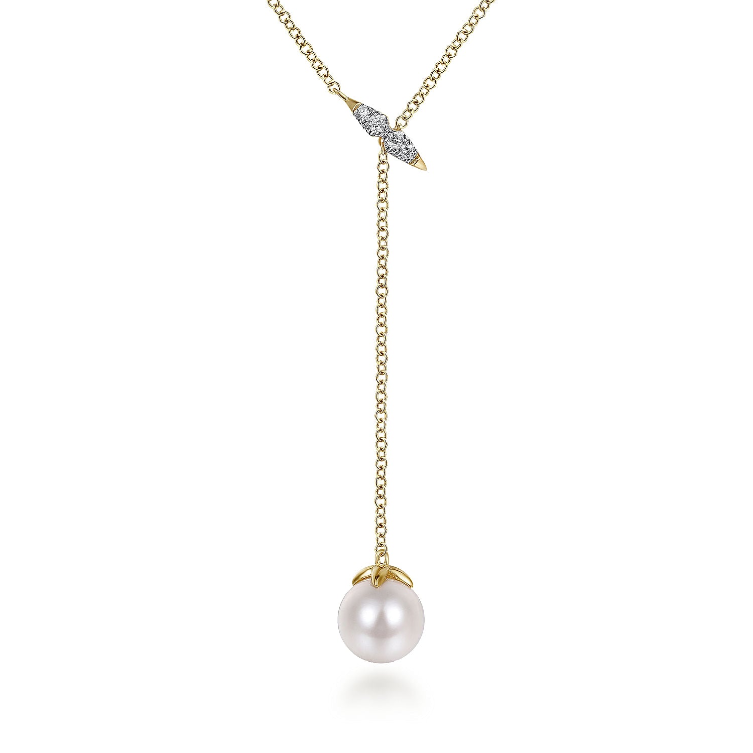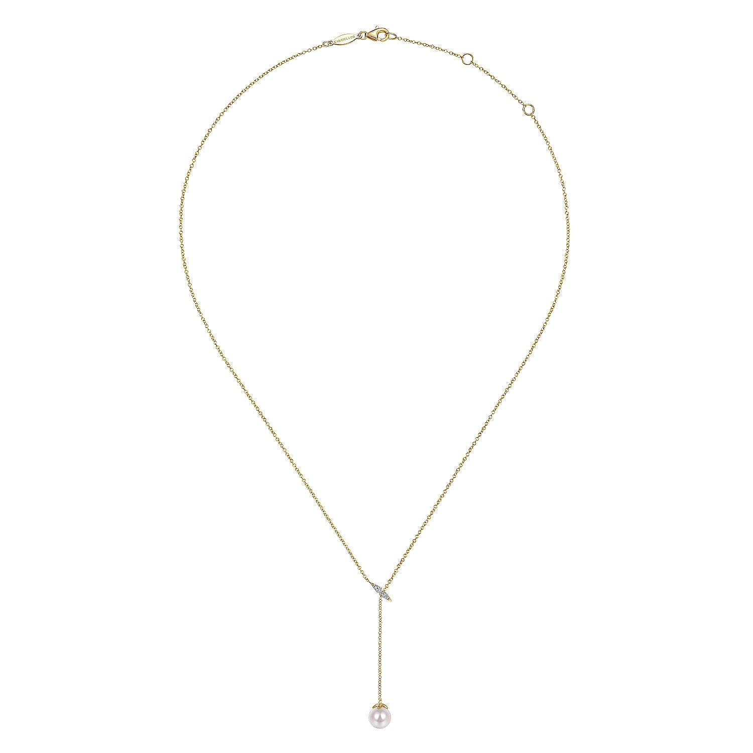 14K Yellow Gold Diamond And Pearl Y Knot Necklace