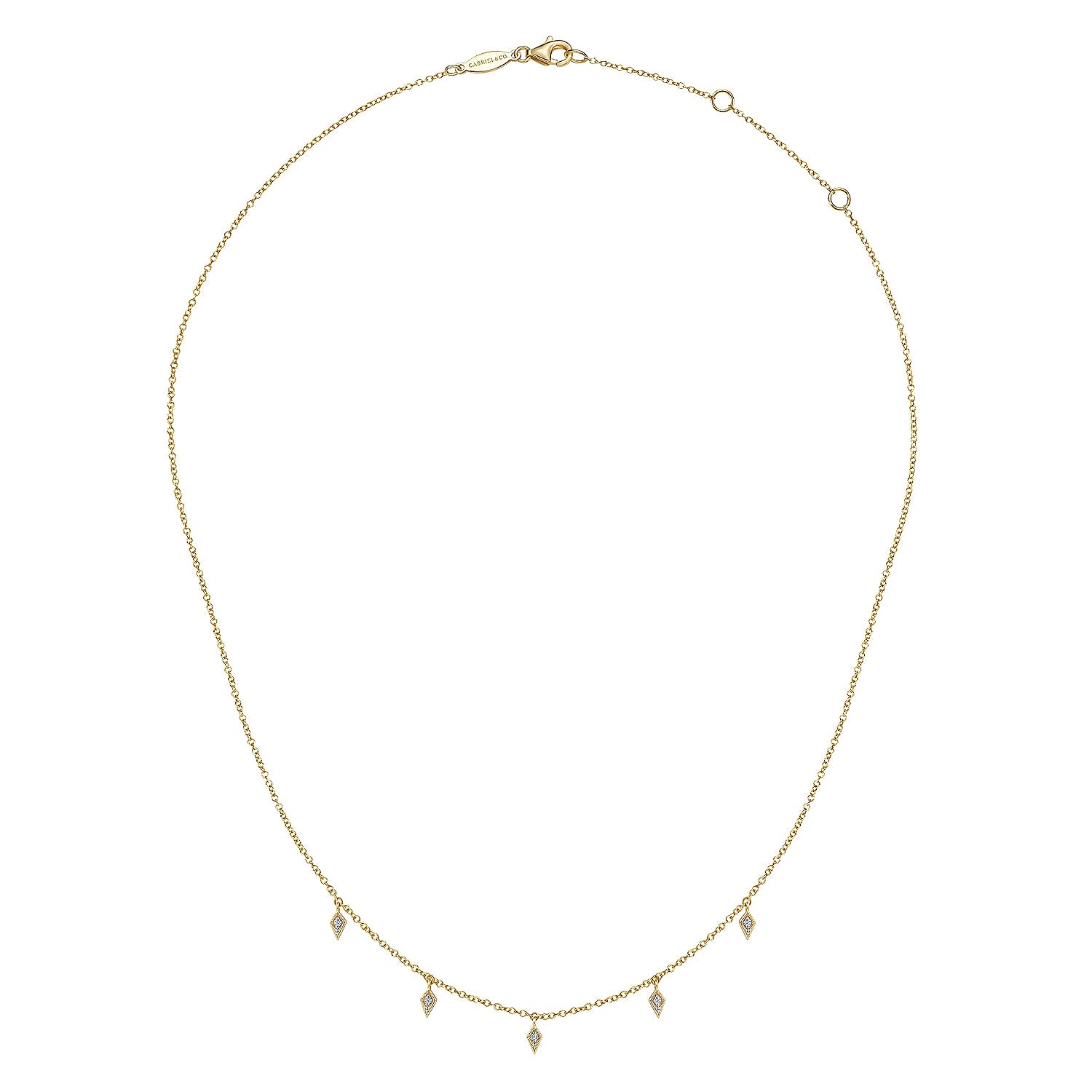 14K Yellow Gold Diamond Station Kite Droplet Necklace