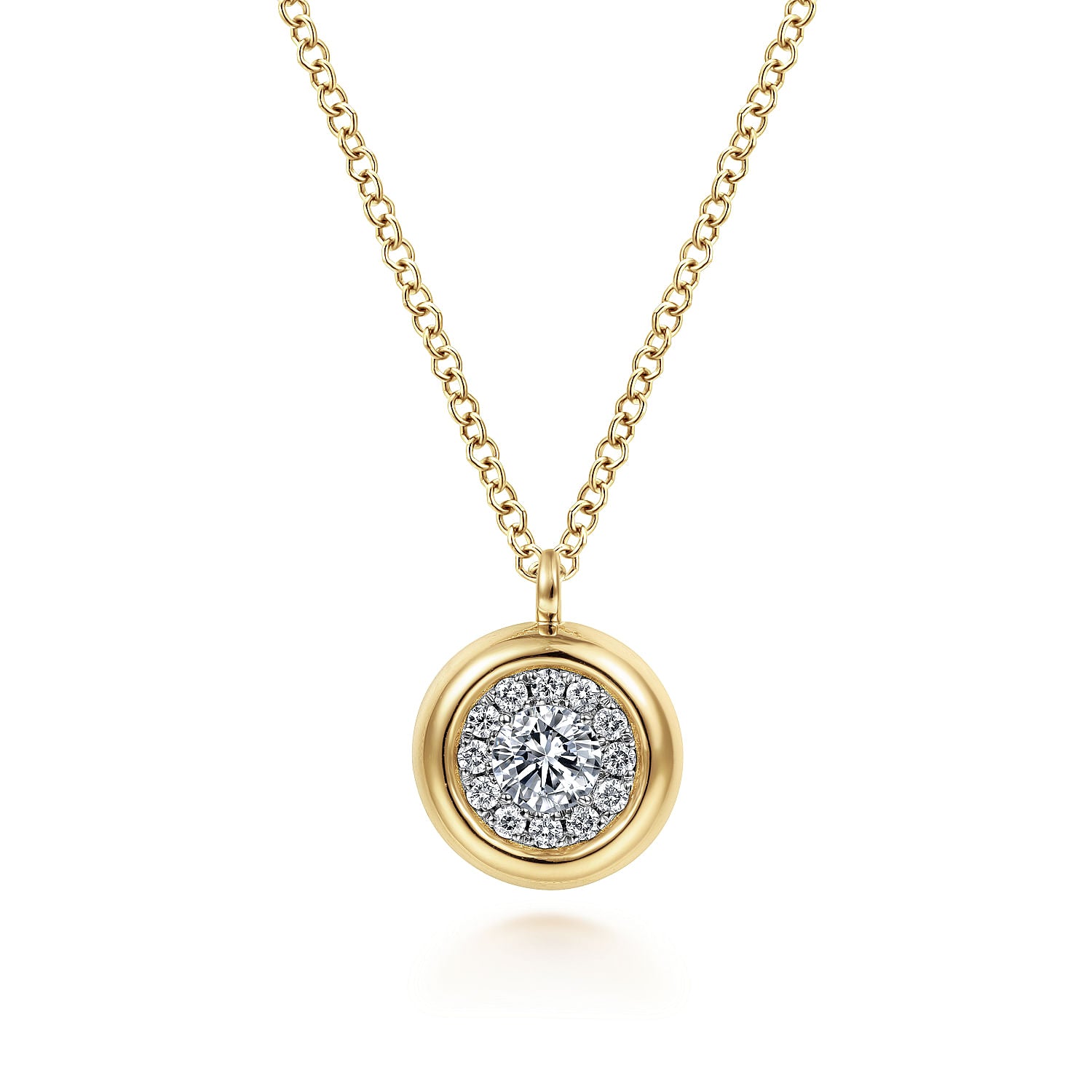14K Yellow Gold Diamond Halo Pendant Necklace