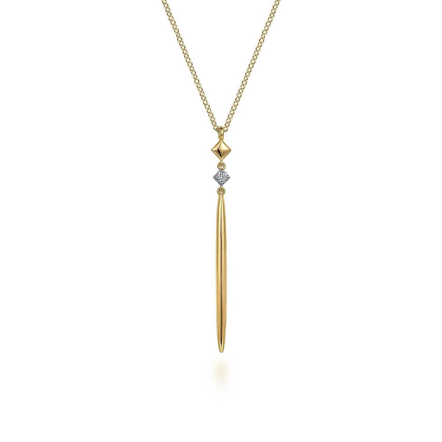 14K Yellow Gold Diamond Pendant Drop Necklace