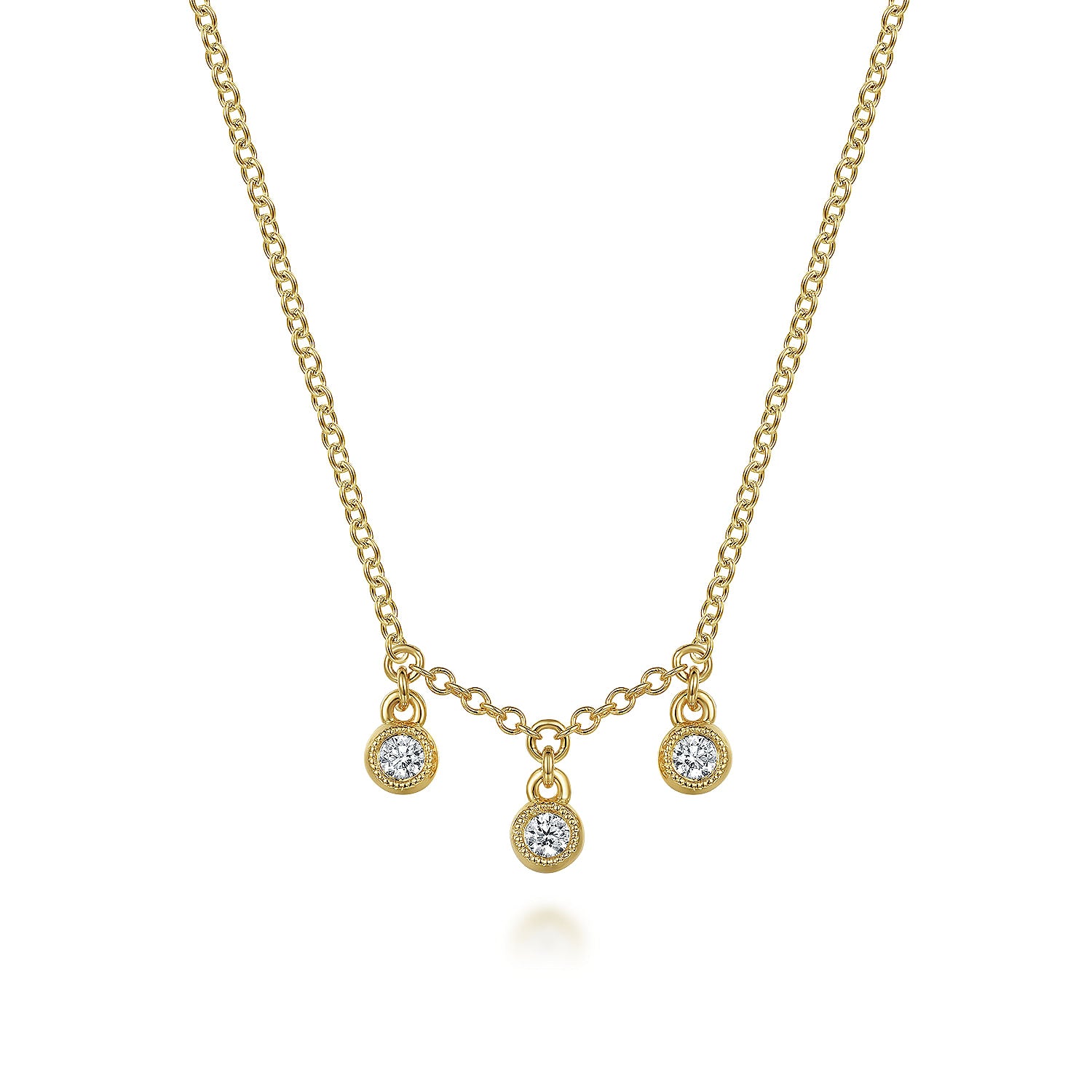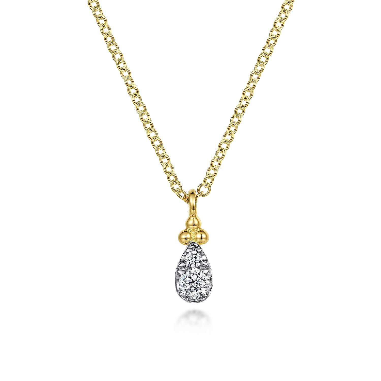 14K Yellow Gold Diamond Drop Pendant Necklace