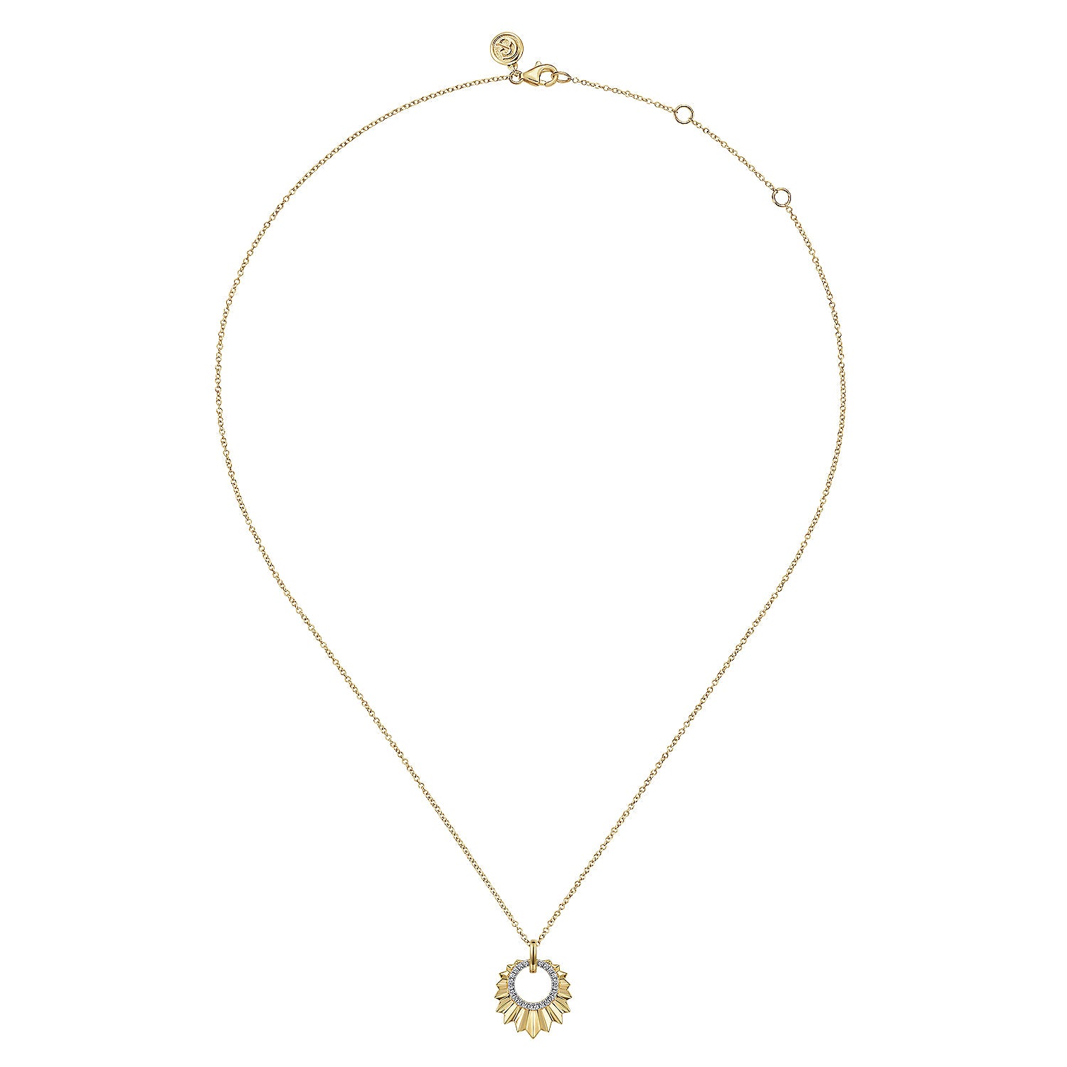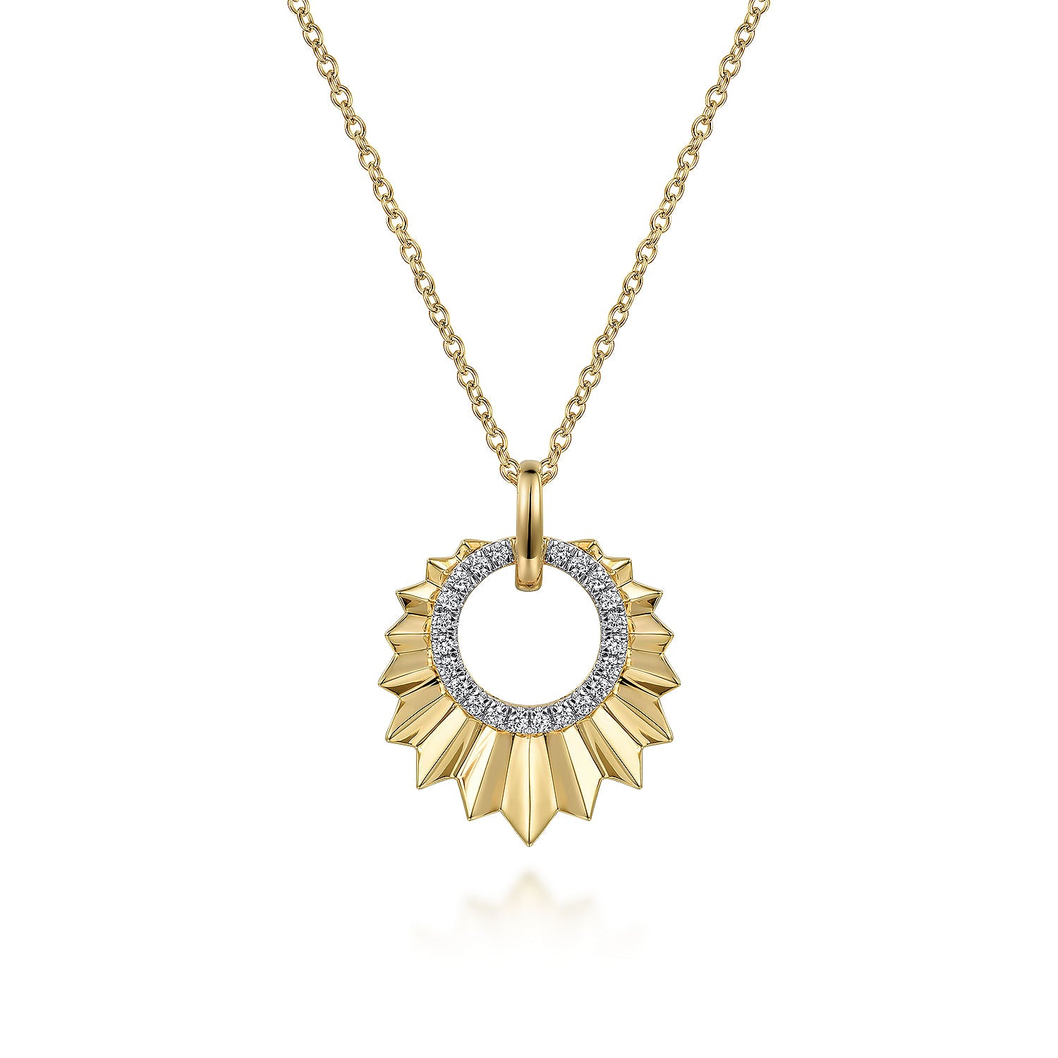 14K Yellow Gold Diamond and Diamond Cut Texture Pendant Necklace