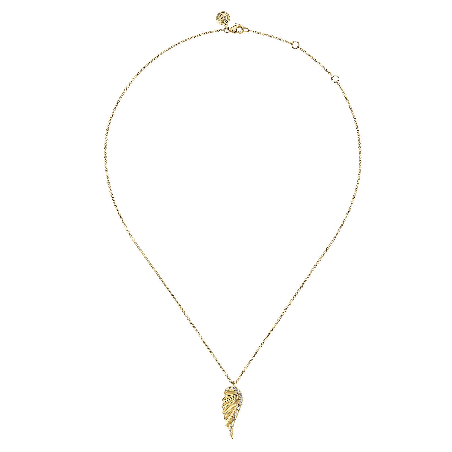14K Yellow Gold Diamond Cut Wing Shape Pendant Necklace