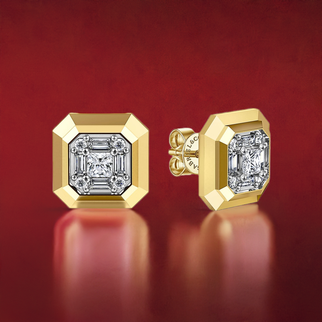 14K Yellow Gold Diamond Geometric Stackable Ring