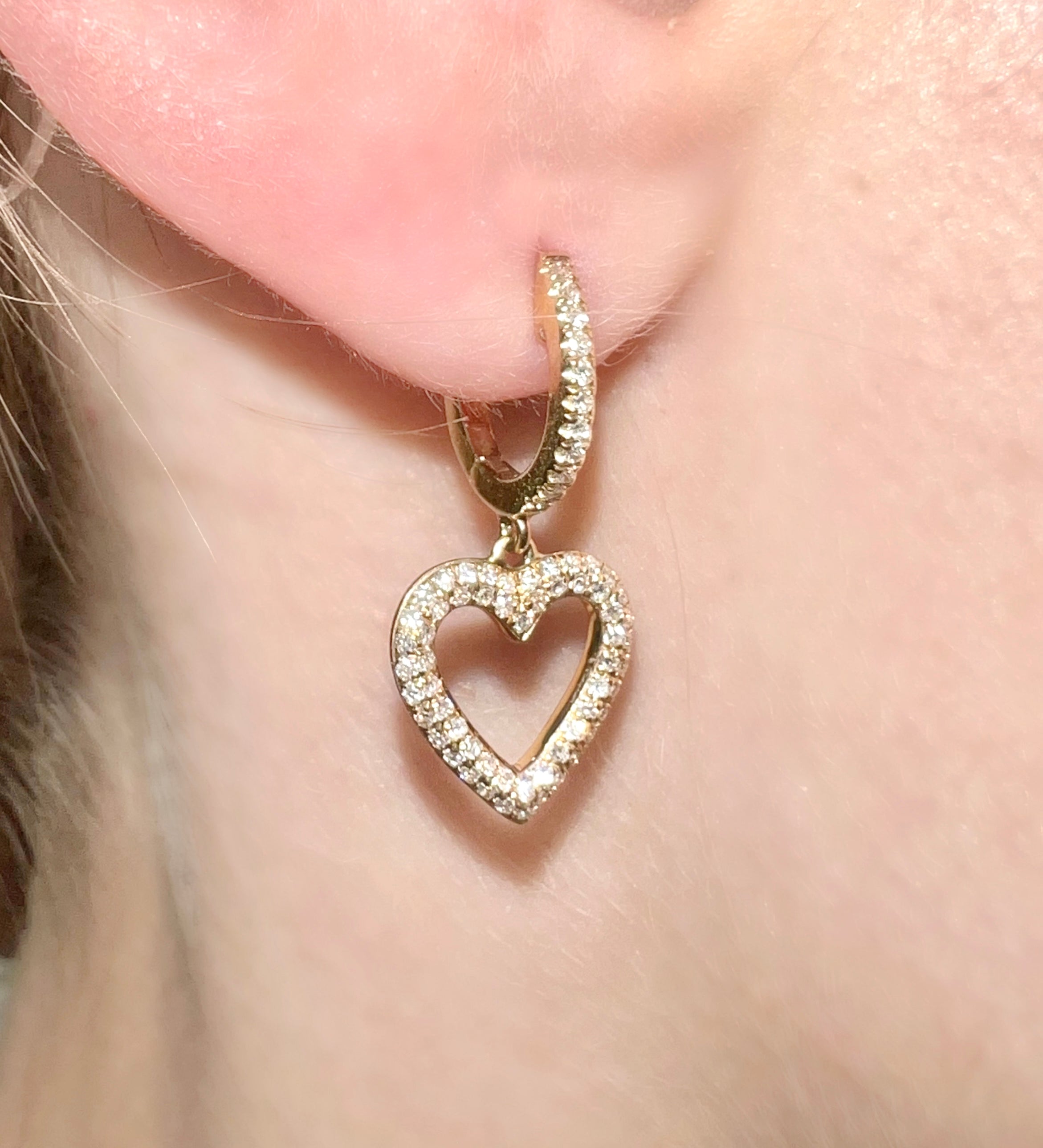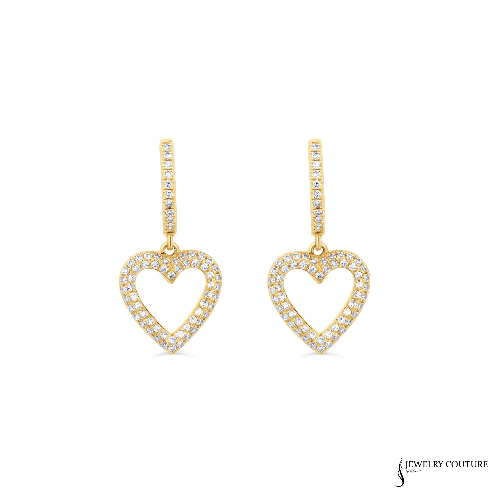Lover - 14KT Yellow Gold Diamond Heart Huggie Earrings