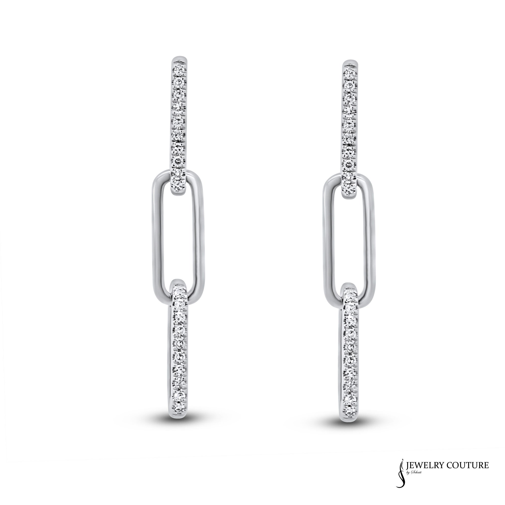 Paper Clip - 14KT White Gold Diamond Dangle Earrings