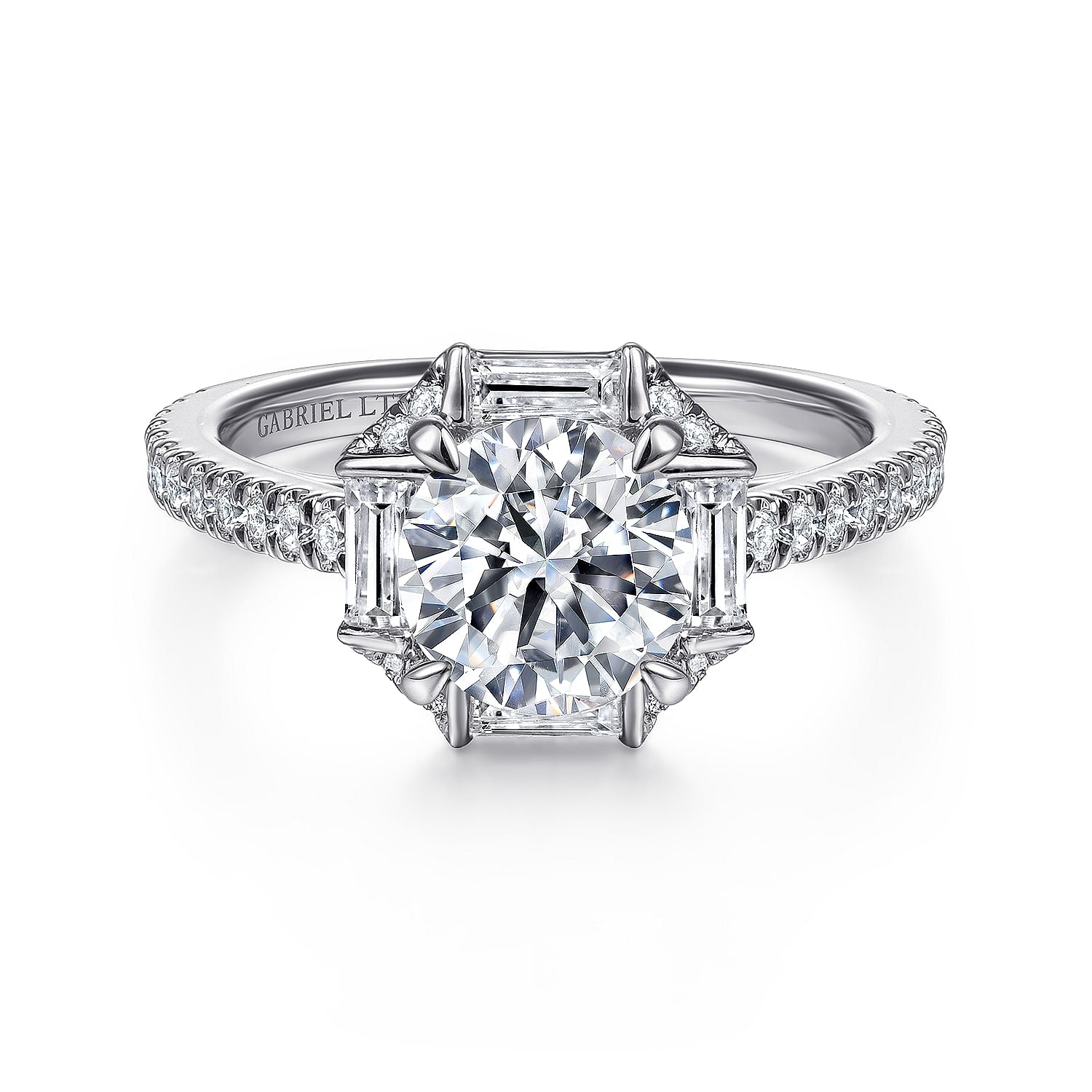 Ryland- 18k White Gold Octagonal Halo Round Diamond Engagement Ring