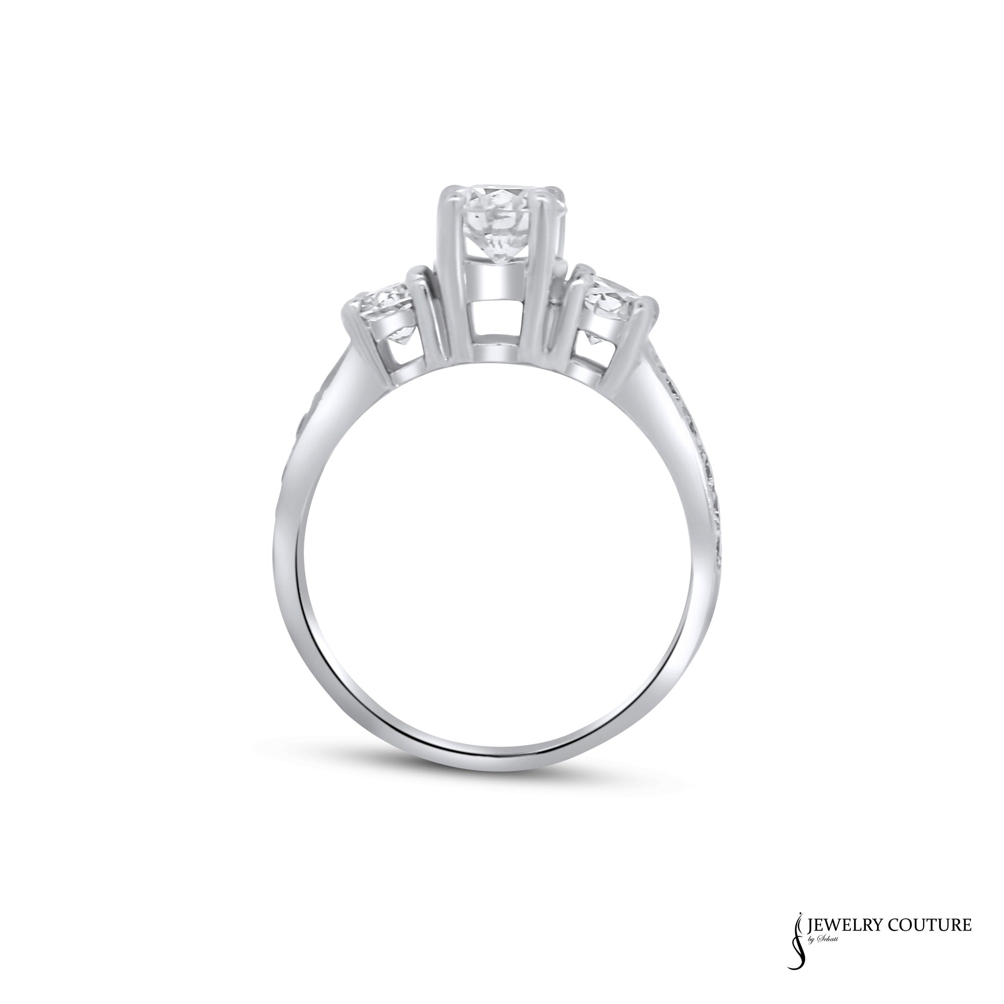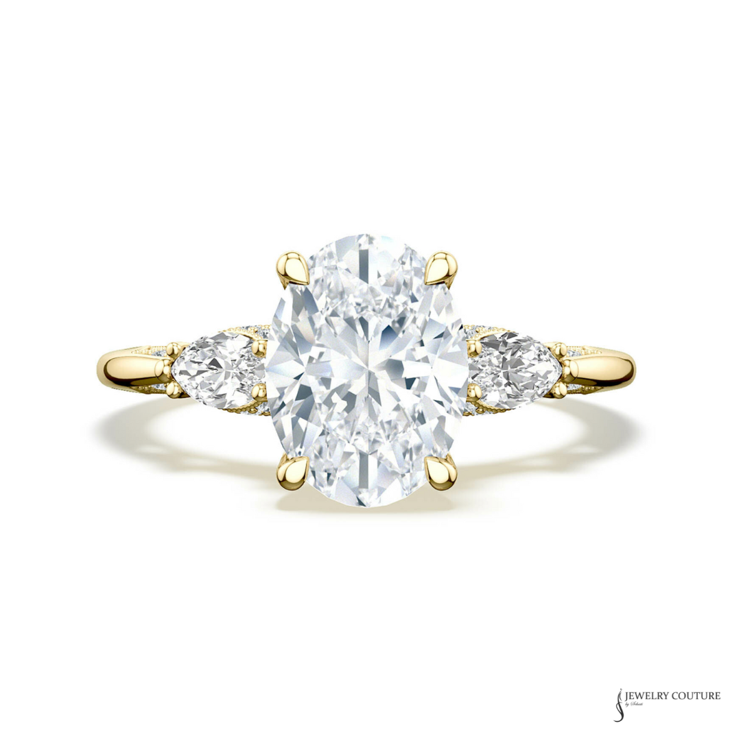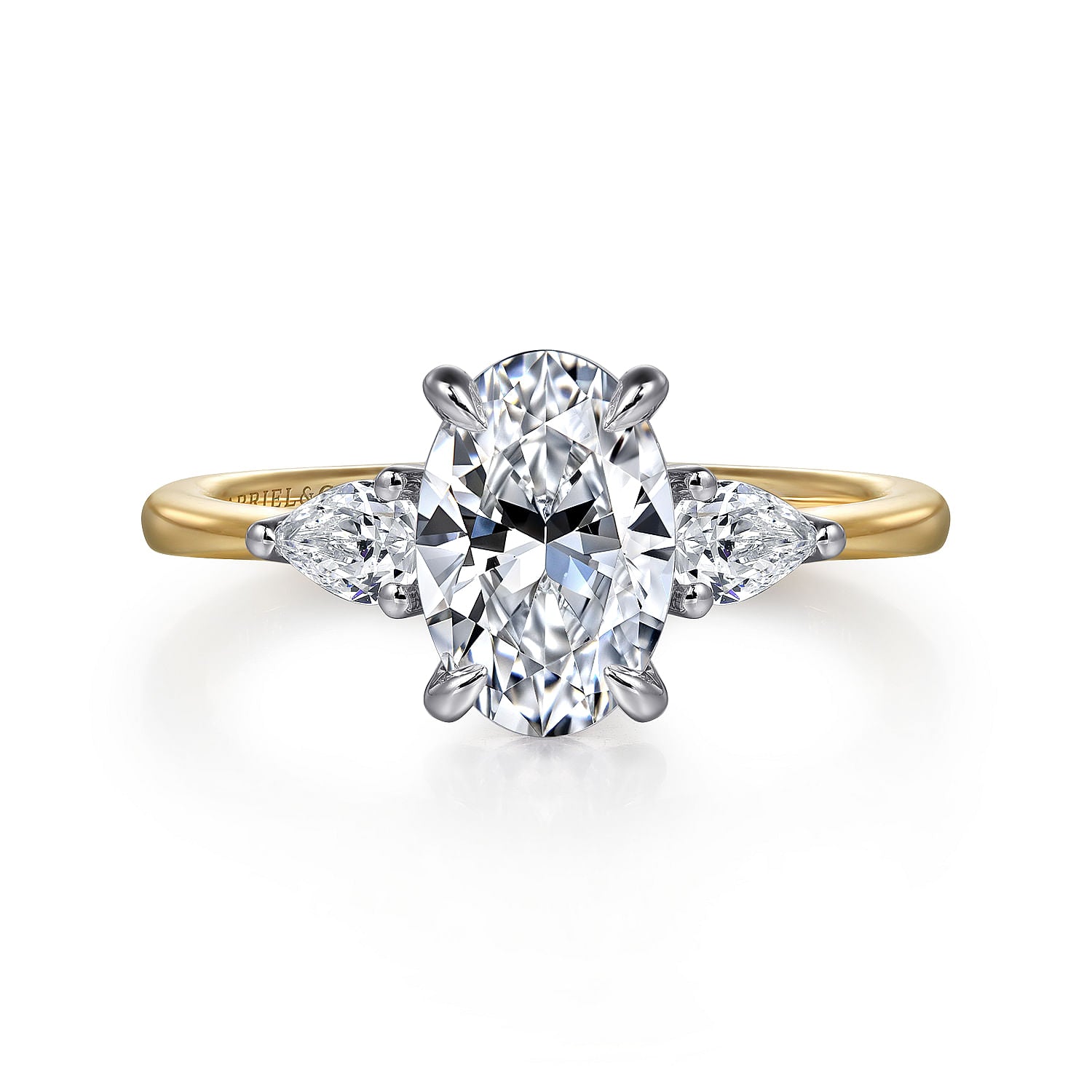 Sima - 14K White-Yellow Gold Oval Three Stone Diamond Engagement Ring