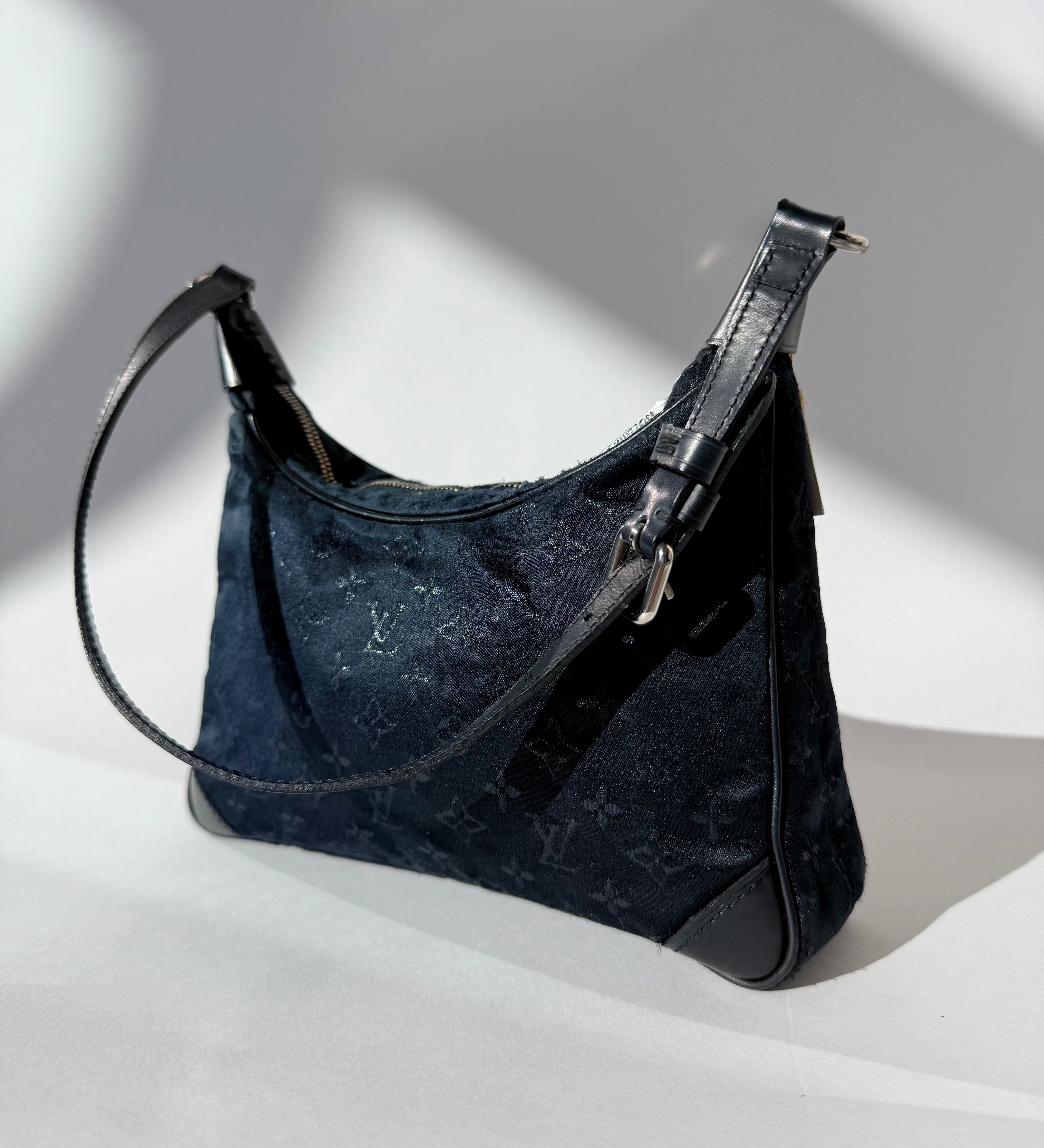 LOUIS VUITTON Vintage LV Monogram Little Boulogne Mini Shoulder Bag Black Satin