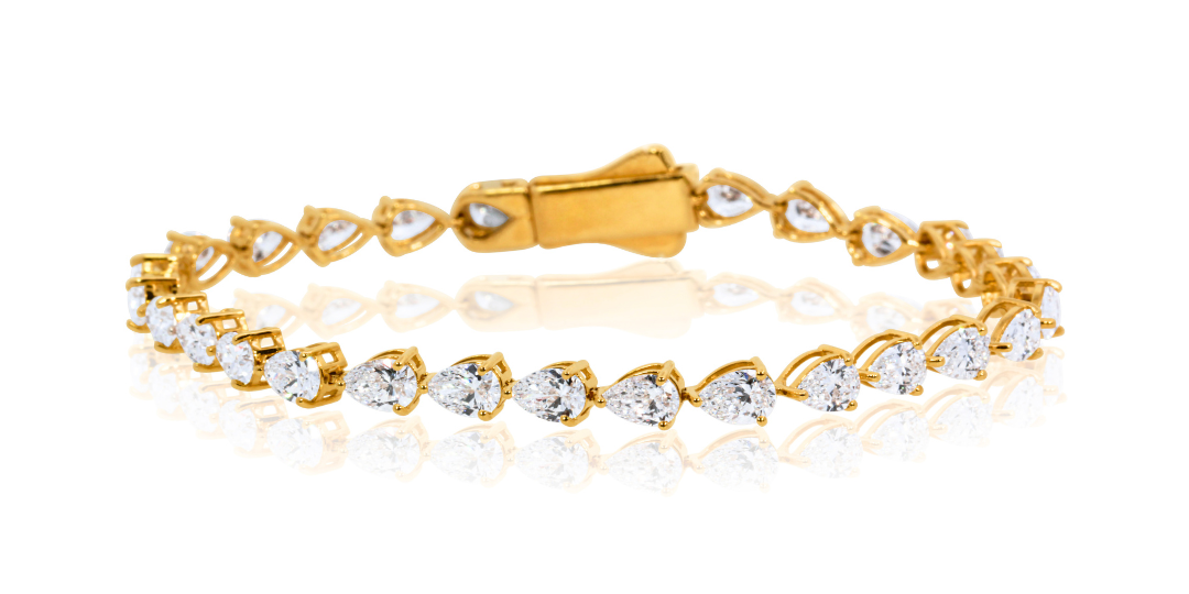 Lab Grown Diamond Bracelet 14K Yellow Gold Pear Shape Diamonds Tennis Style